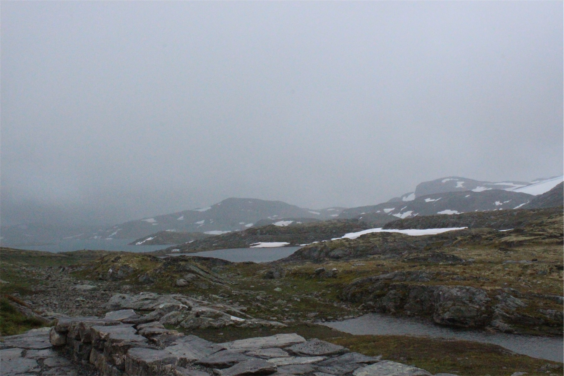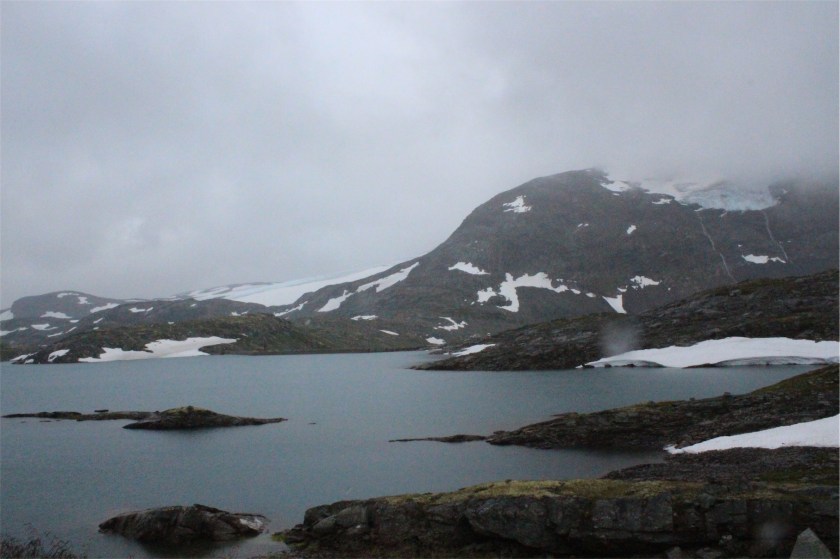 As we began our climb up the mountains over the top of Norway, the terrain changed dramatically, we drove through a lot of ice and huge glaciers right on the side of the road. As we had prepared for a very long day by leaving early there were no other cars and we just took our time, stopping to take photos and staring in amazement out the windows. We noted the highest point of our journey being at 1400m above sea level.