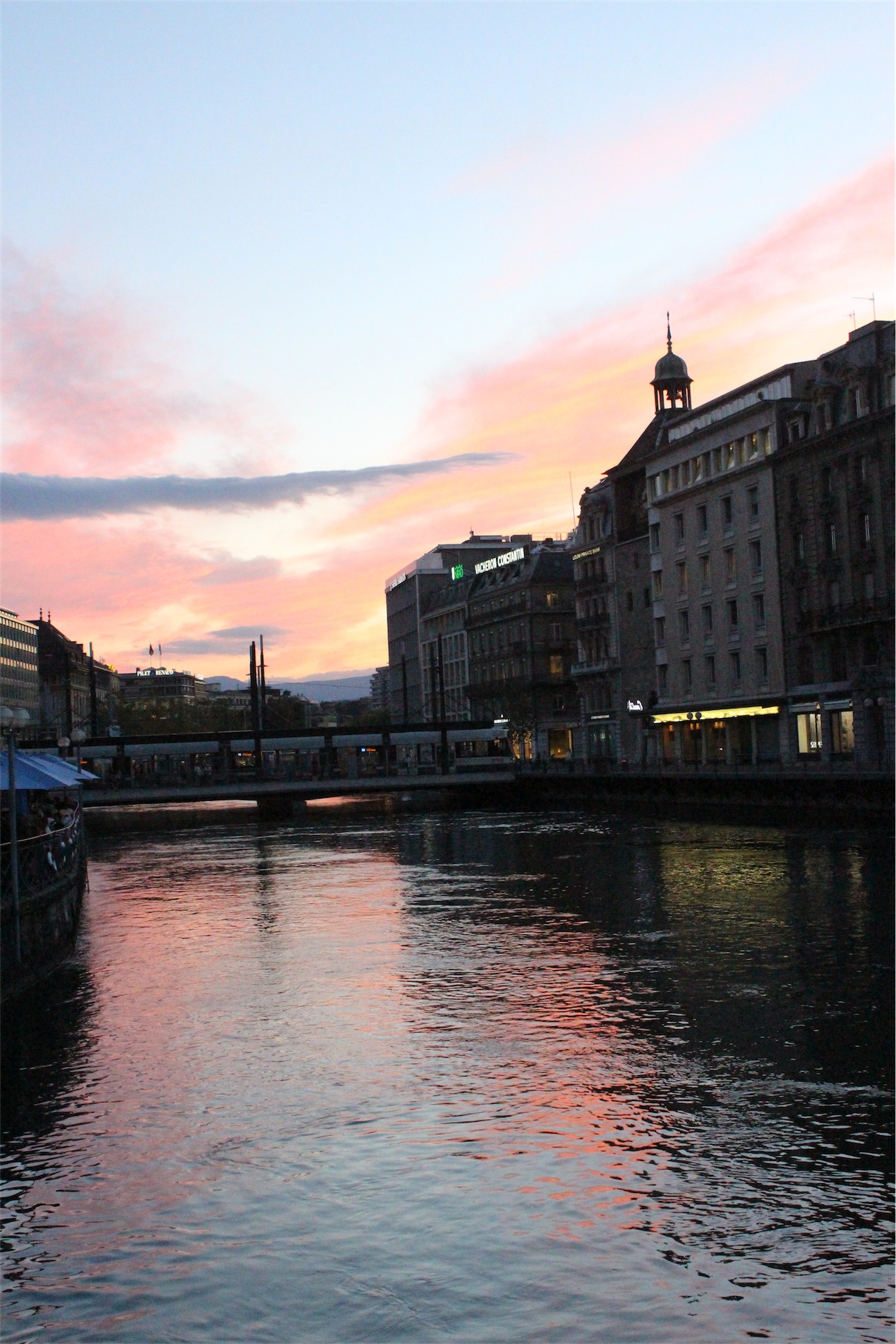 Geneva was our last stop in Switzerland and a fantastic one. As we strolled around Geneva in the fading light, the sunset was amazing! We also found a square where some of the cobblestones had been replaced with illuminated ones, they contained slogans in different languages. We also had dinner in the old town and strolled around the trendy part of town as well.