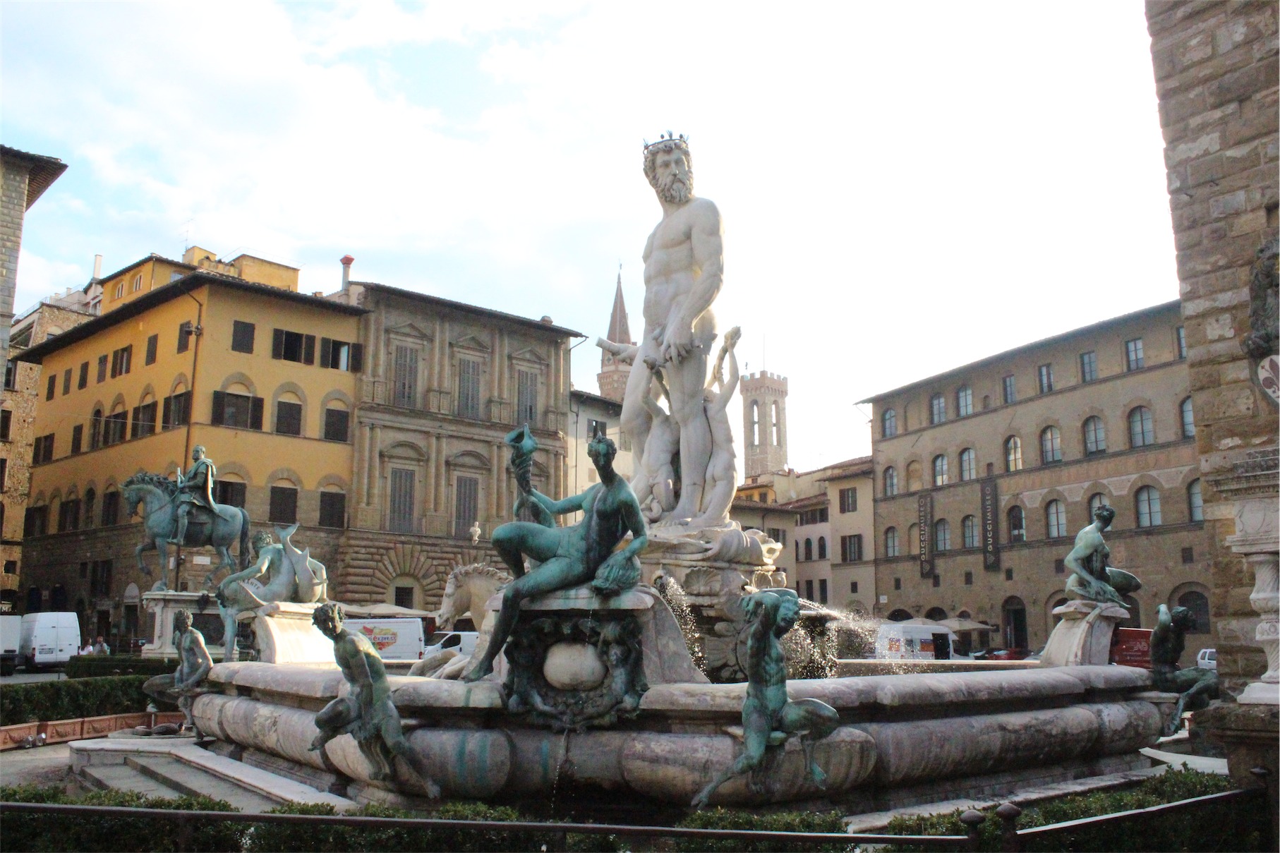 Arriving early, I was able to go around and take some photos of impressive locations before any tourist crowds got in the way. The Fountain of Neptune (below) is an impressive focal point in the Piazza della Signoria, out the front of the Uffizi museum. The other photos here are: The Basilica of San Miniato al Monte, Ponte alle Grazie, Ponte Vecchio and Ponte Santa Trinita – the bridges on the river Arno.