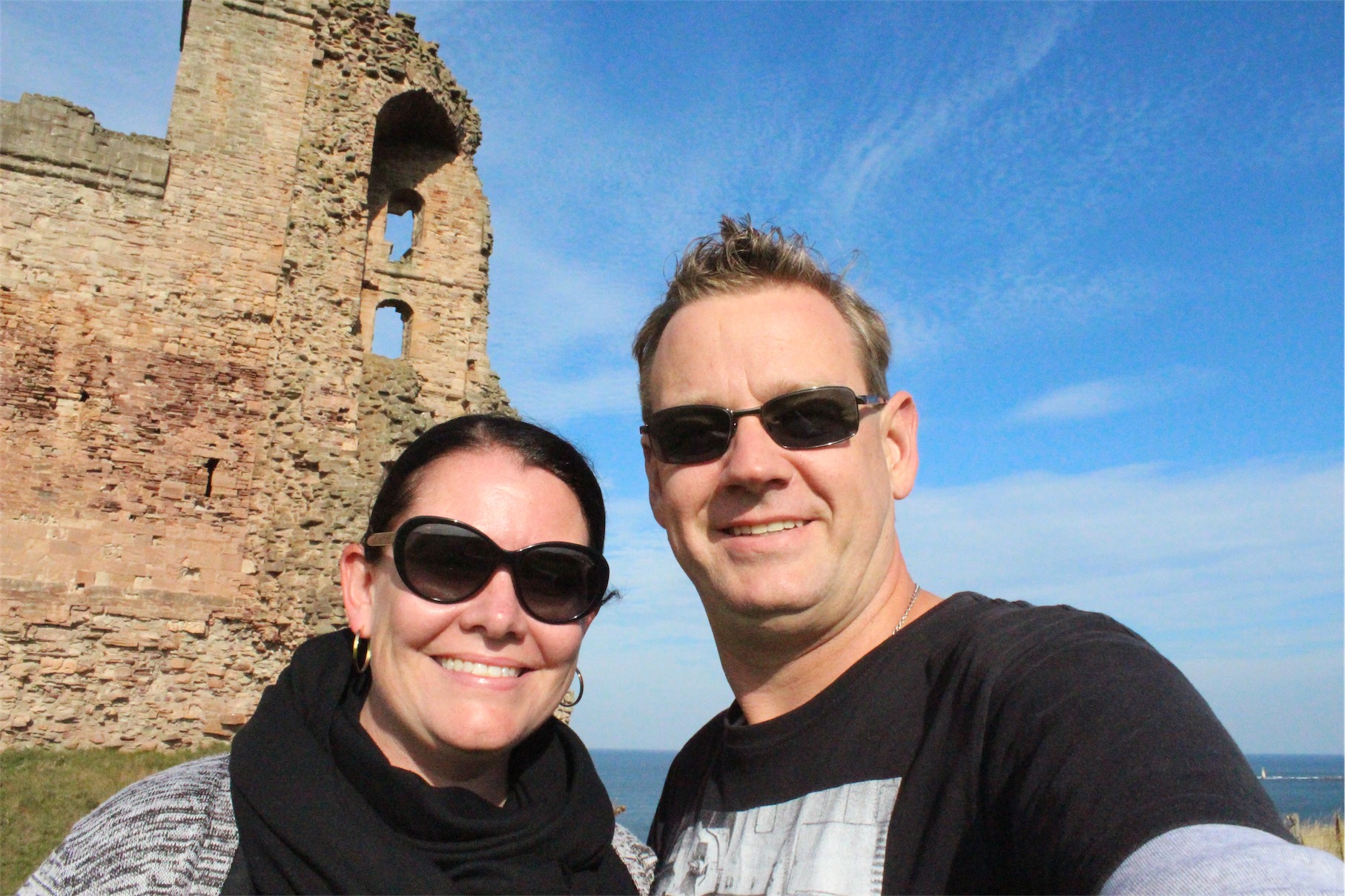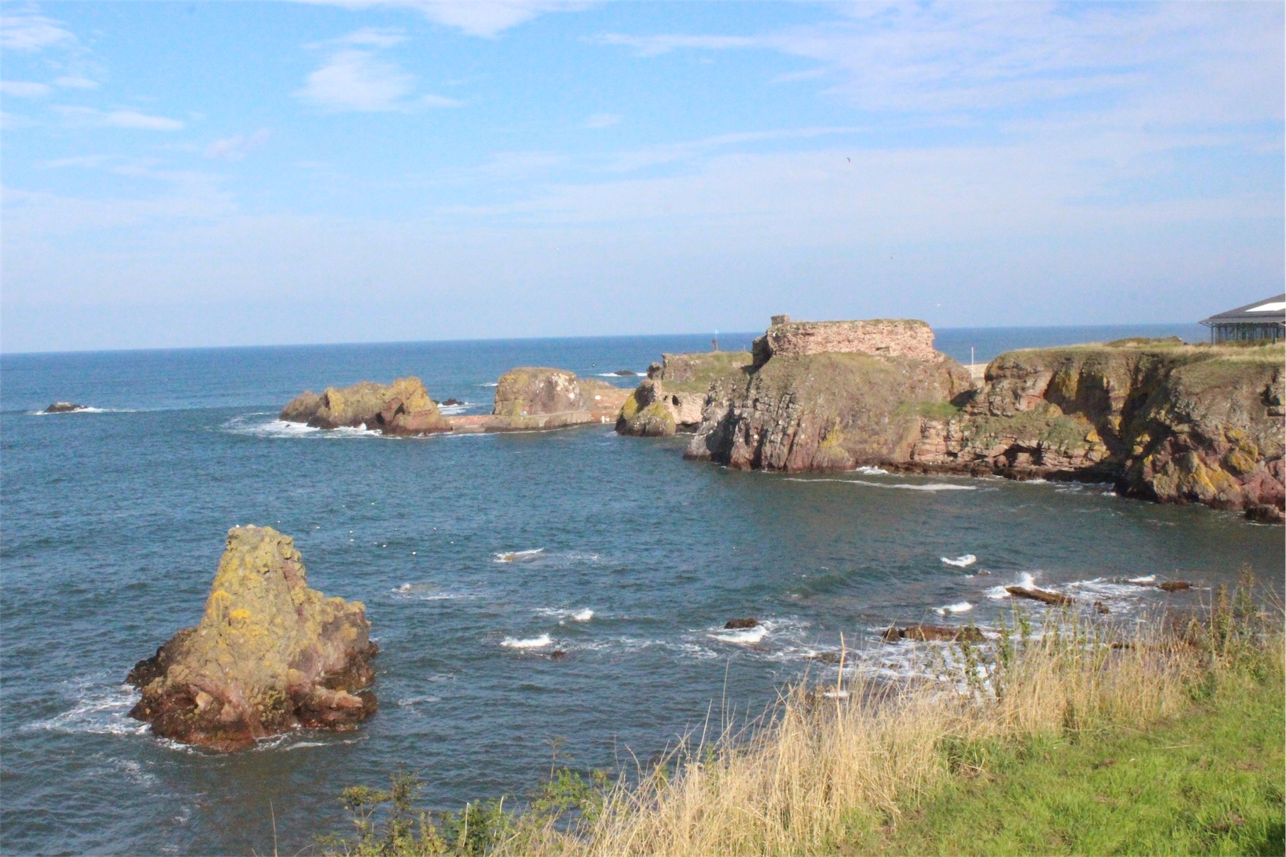 After lunch we continued on our way to Edinburgh via the coast. Stopping at a look out for what we thought would be a few quick photos of the Scottish cliffs and ocean, we spotted castle ruins in the distance. Keith got so excited we had to turn around and back track to see if we could get a closer look.