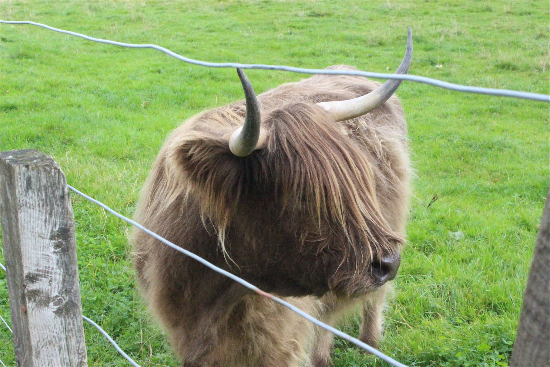 Until this point, Highland Coos were about as real as Nessy since we hadn’t seen any. When we mentioned them to the owners, they actually went and got them to come over to us, enticing them to the fence with some food! We couldn’t believe our eyes. They were so cute with their huge horns and emo fringes. By the way, they aren’t some mythical beast – Coo is the way the Scottish say “cow”.