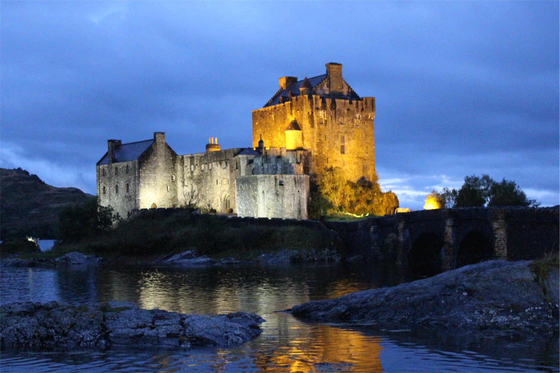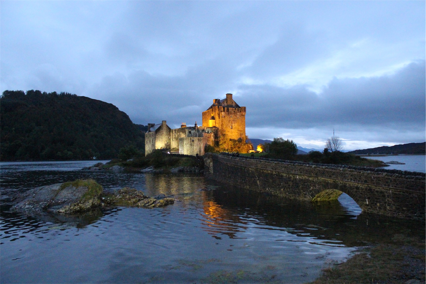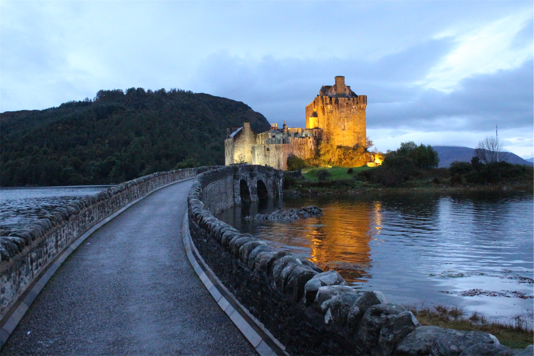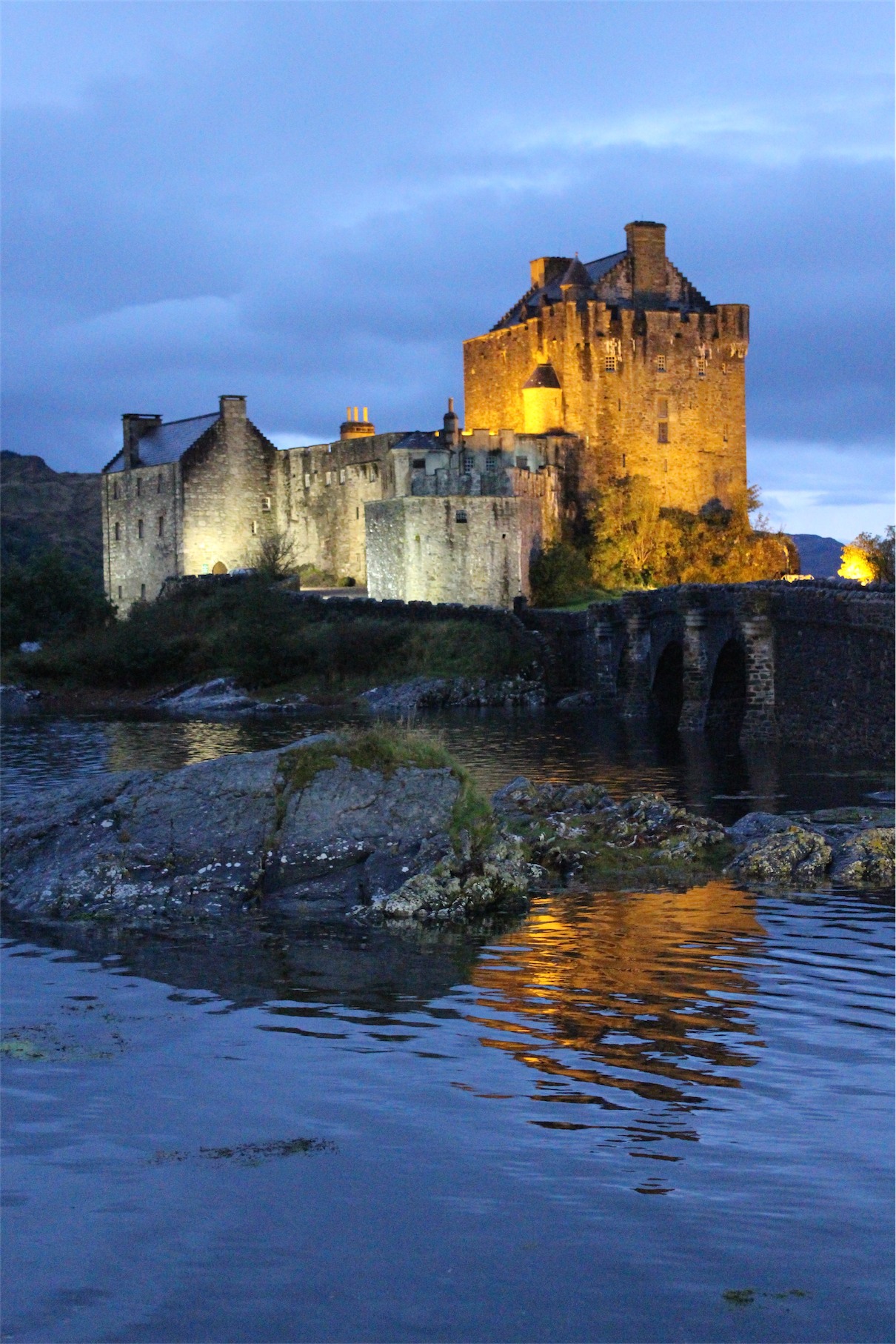 Eilean Donan is a small tidal island where three lochs meet, Loch Duich, Loch Long and Loch Alsh, in the western Highlands of Scotland; since the castle’s restoration in the early 20th Century, a footbridge has connected the island to the mainland. In the 13th century the first castle was built on the island, but over the years has been destroyed and rebuilt many times.