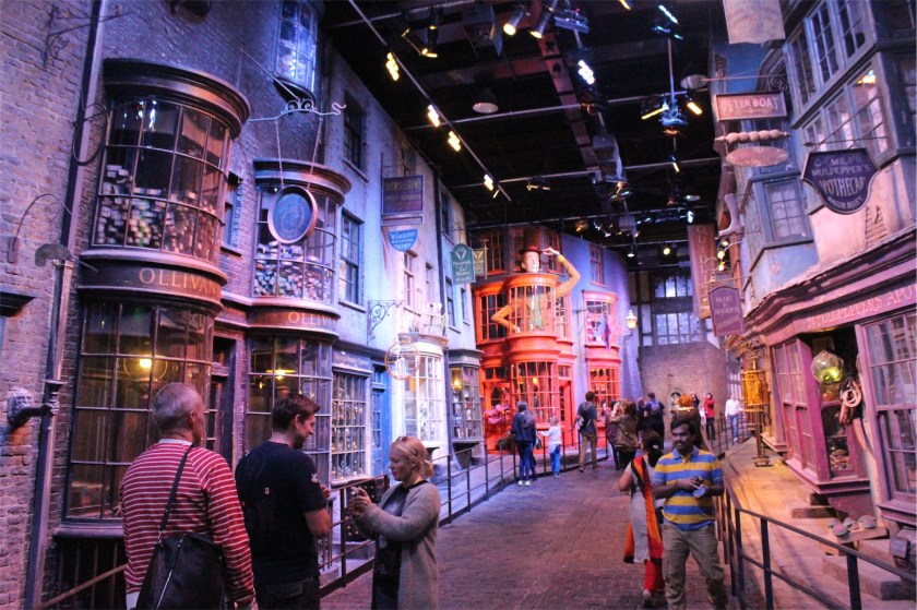 The locations that you walked through (like the Great Hall and Diagon Alley) were the actual sets used in the films. There was also a huge amount of props and back drops that were arranged throughout the studio.