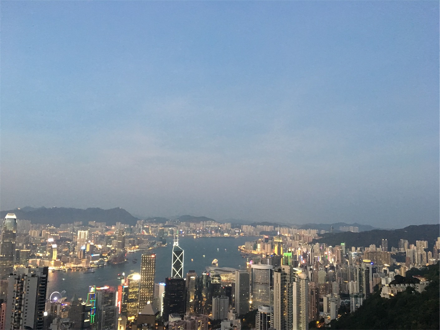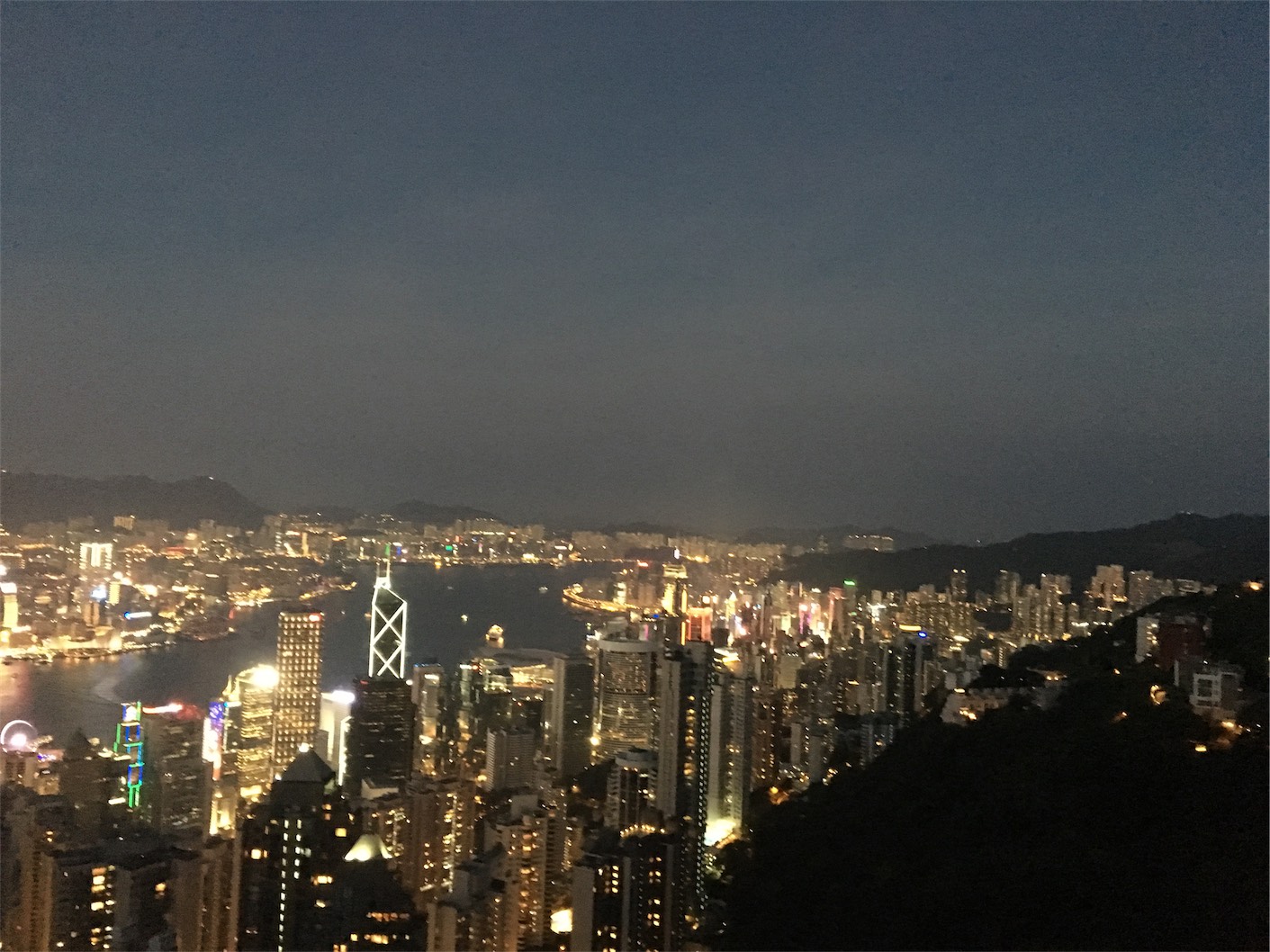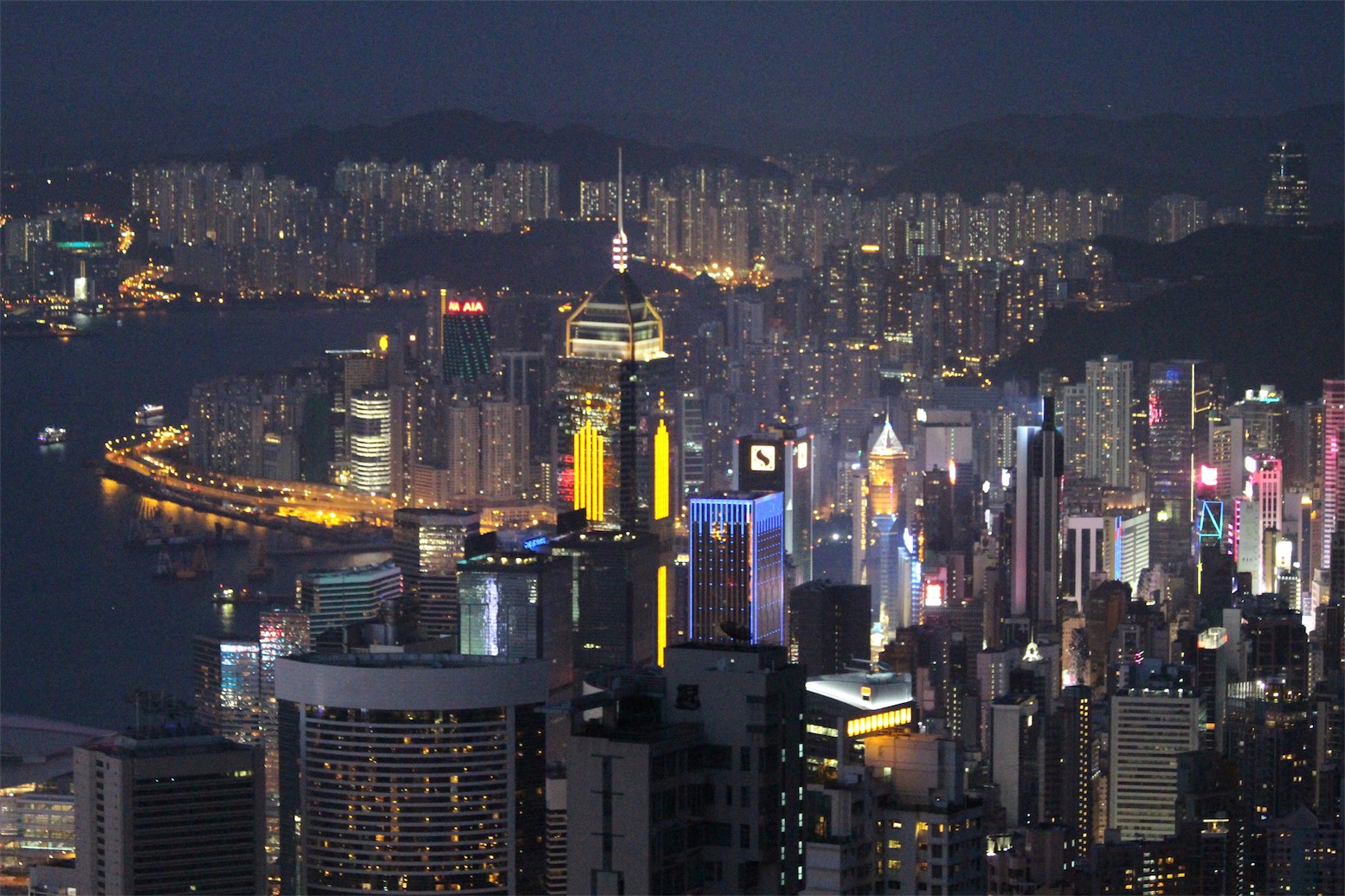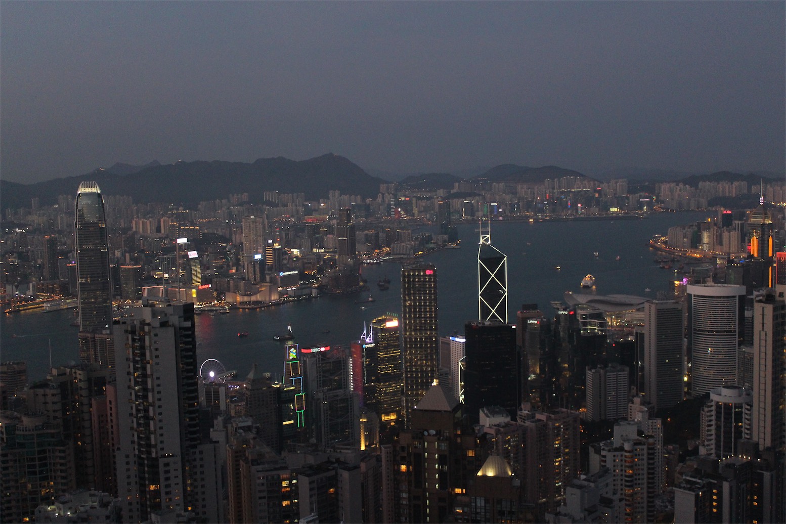 And finally after sunset, the lights and skyline of Hong Kong come alive.