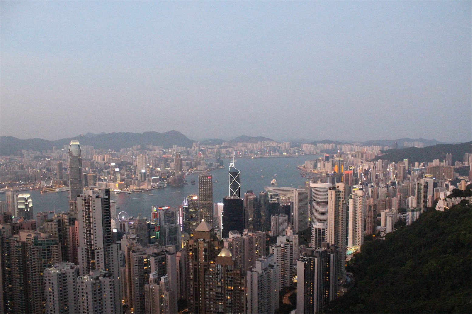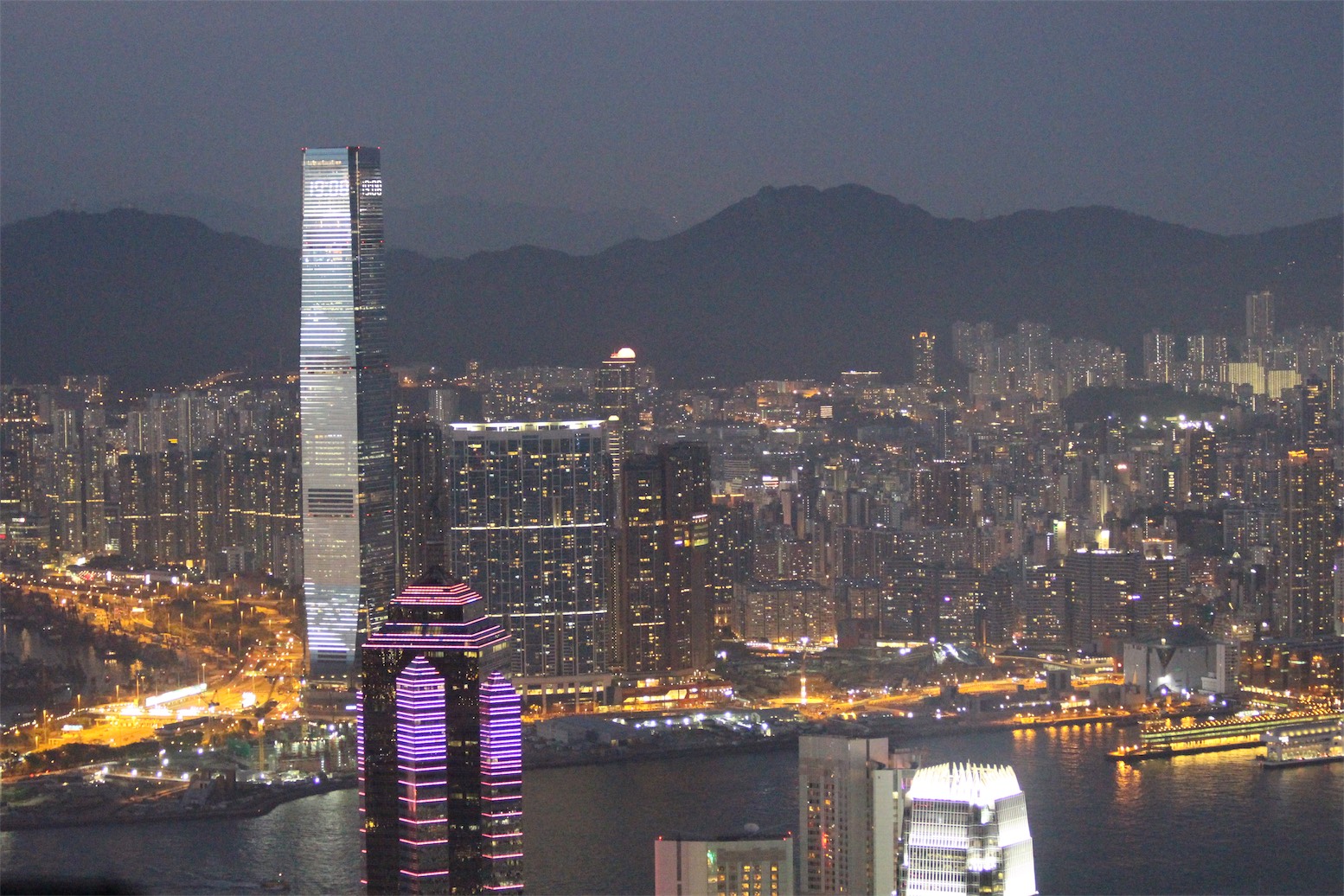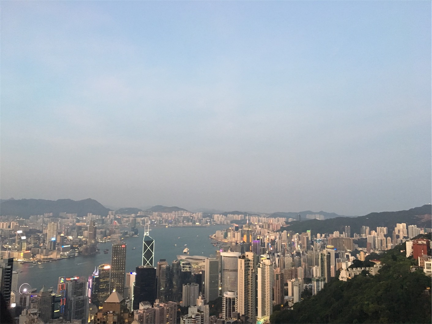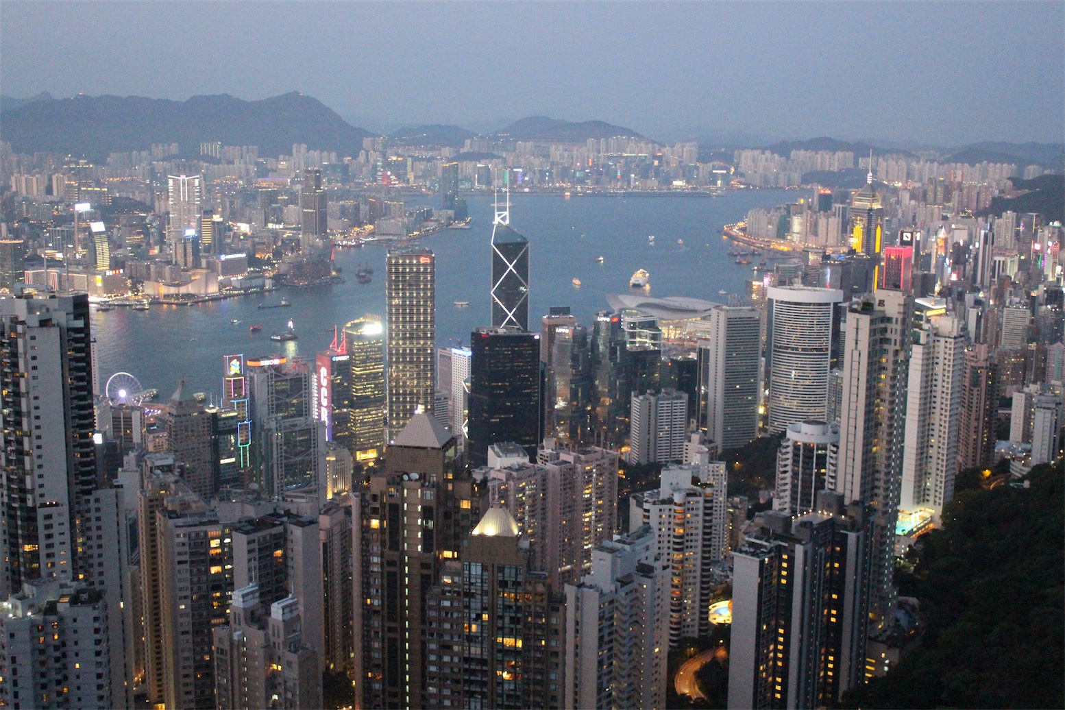 And finally after sunset, the lights and skyline of Hong Kong come alive.