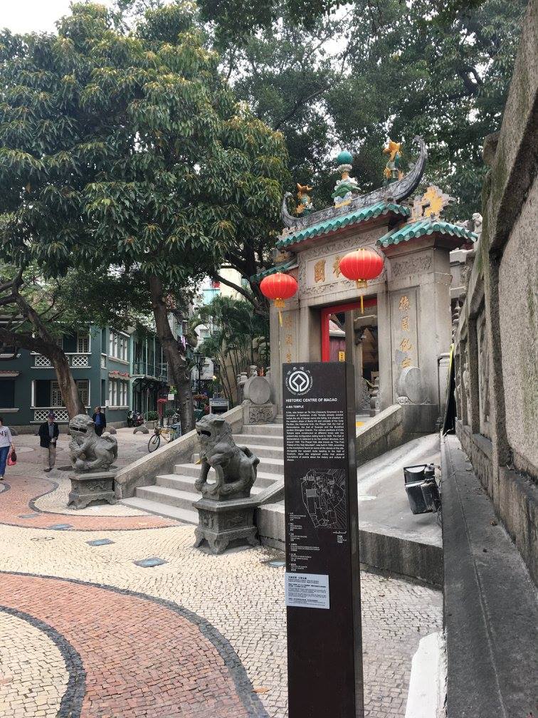 A-Ma Temple (Ma Kok Miu). Our tour guide told us a story of how Macau was named. Apparently when a lost Portuguese sailing ship landed here by accident they tried to get help. Not having a common language, the sailors tried to find out their location from some Monks at this temple and mistook what they were saying not as “Ma Kok Miu” but as “Macau”.