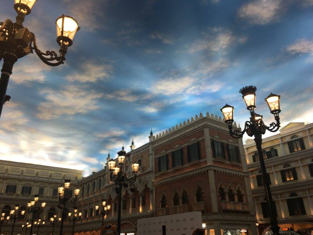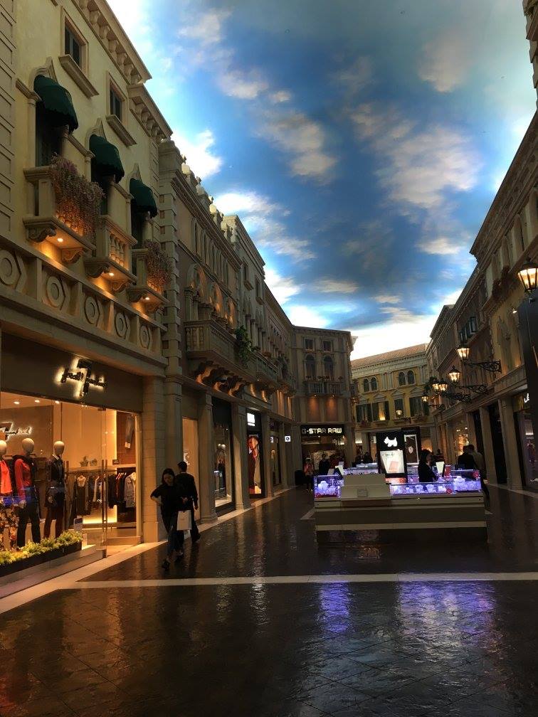 The Venetian Macao is an incredible hotel, shopping mall and casino. The sky that you can see is actually the ceiling with painted clouds and special lighting. The effect is mind blowing!