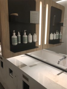 Once arriving in Perth we were directed to the Transit Lounge. It’s a brand new lounge that Qantas have built with this flight in mind. It’s a lovely space and there is also a ‘refresh area’ with Aurora Spa products including a face cleanser, hydrating face mist and moisturiser. There were chef prepared hotdogs along with a buffet and many different beverage options, showers and a yoga/relaxation room!