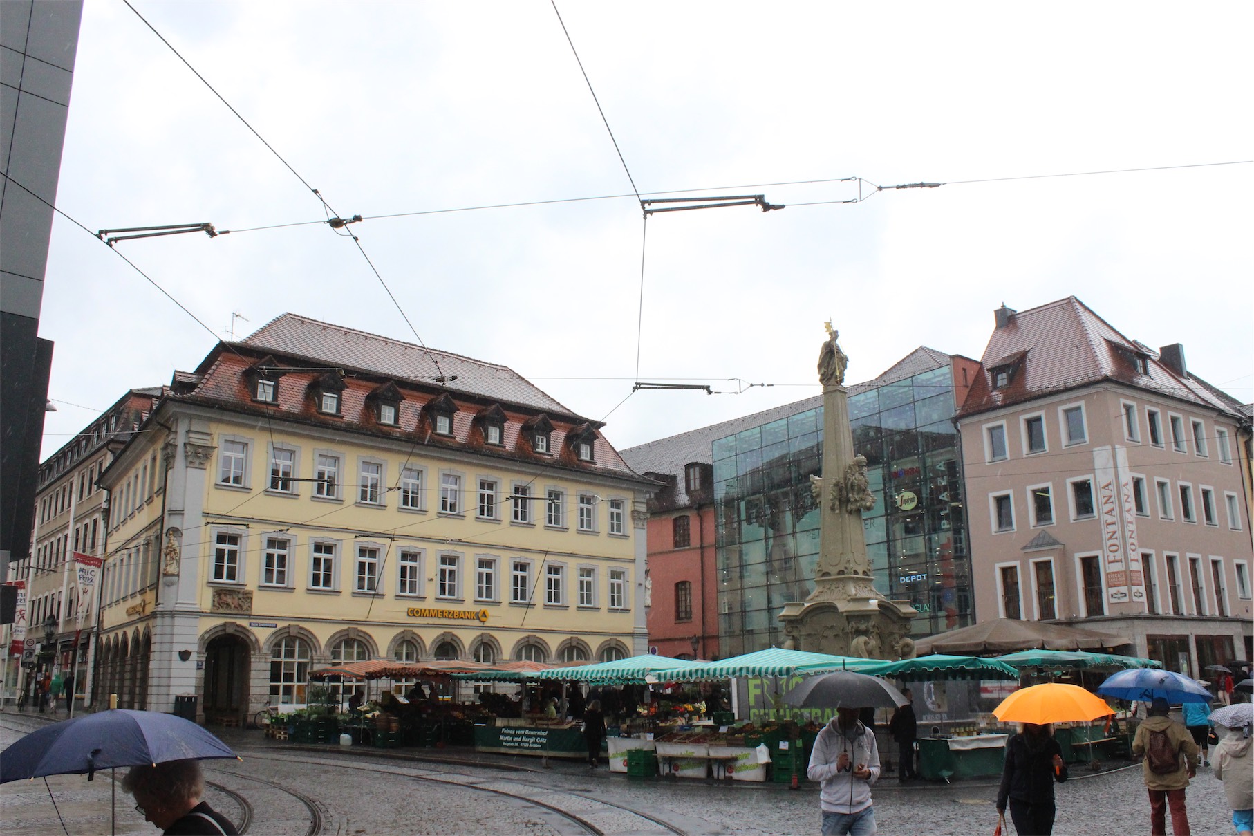 The Four Tubes Fountain (Vierröhrenbrunnen) has origins back to 1763 and is located near markets in the Market Square.