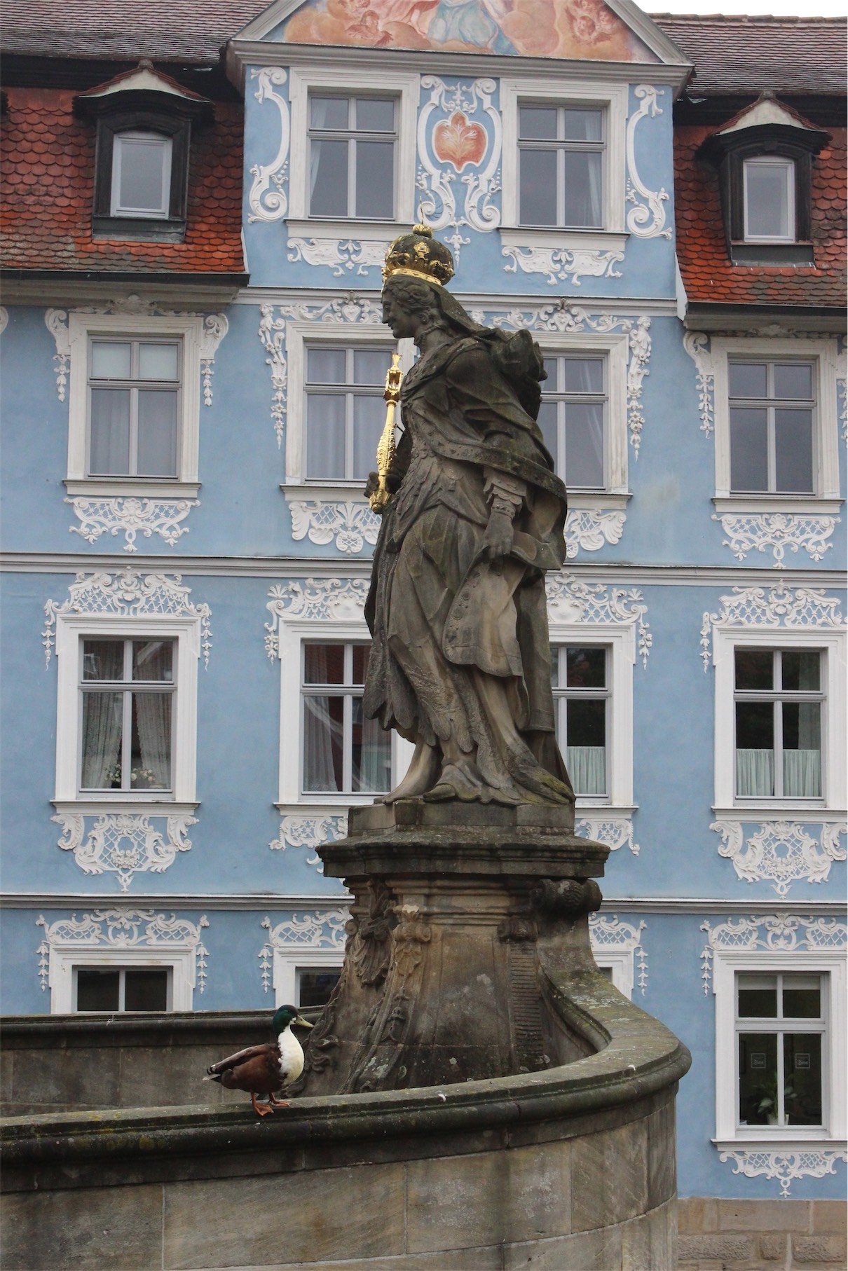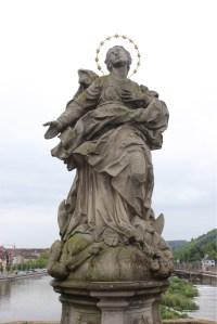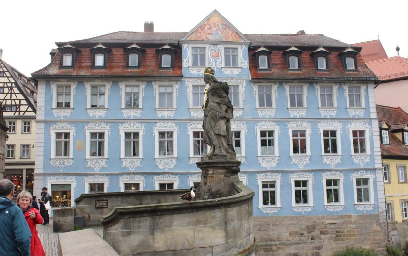 The Untere Brücke (Lower Bridge) is home to a statue of Empress Kunigunde. She died in 1040, was canonized by Pope Innocent III in 1200 and is the patron saint of the city of Bamberg.