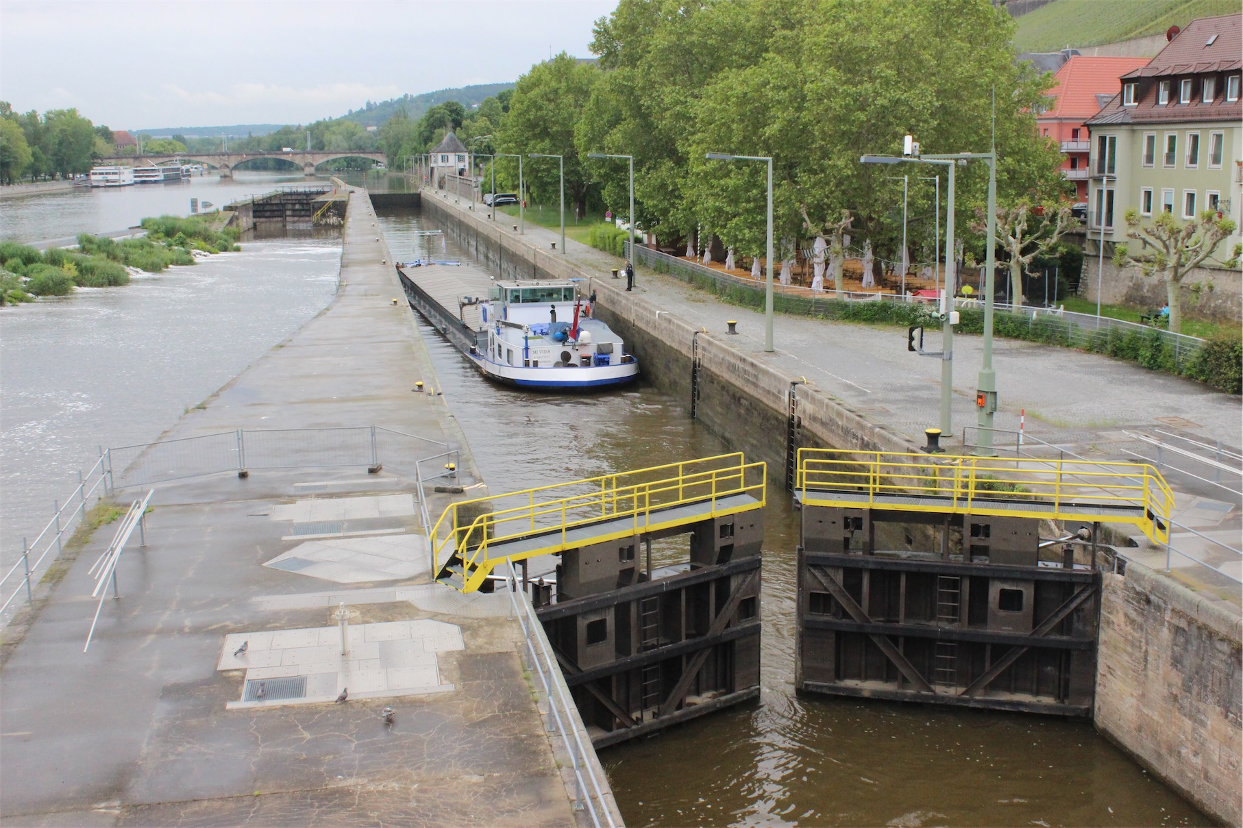 We stood on the bridge and watched a barge come through. To allow the barge through the bridge uses a complex lock process that raises and lowers the boat. It was great to just be standing there watching something that is so common place to the locals, but so entirely alien to us.