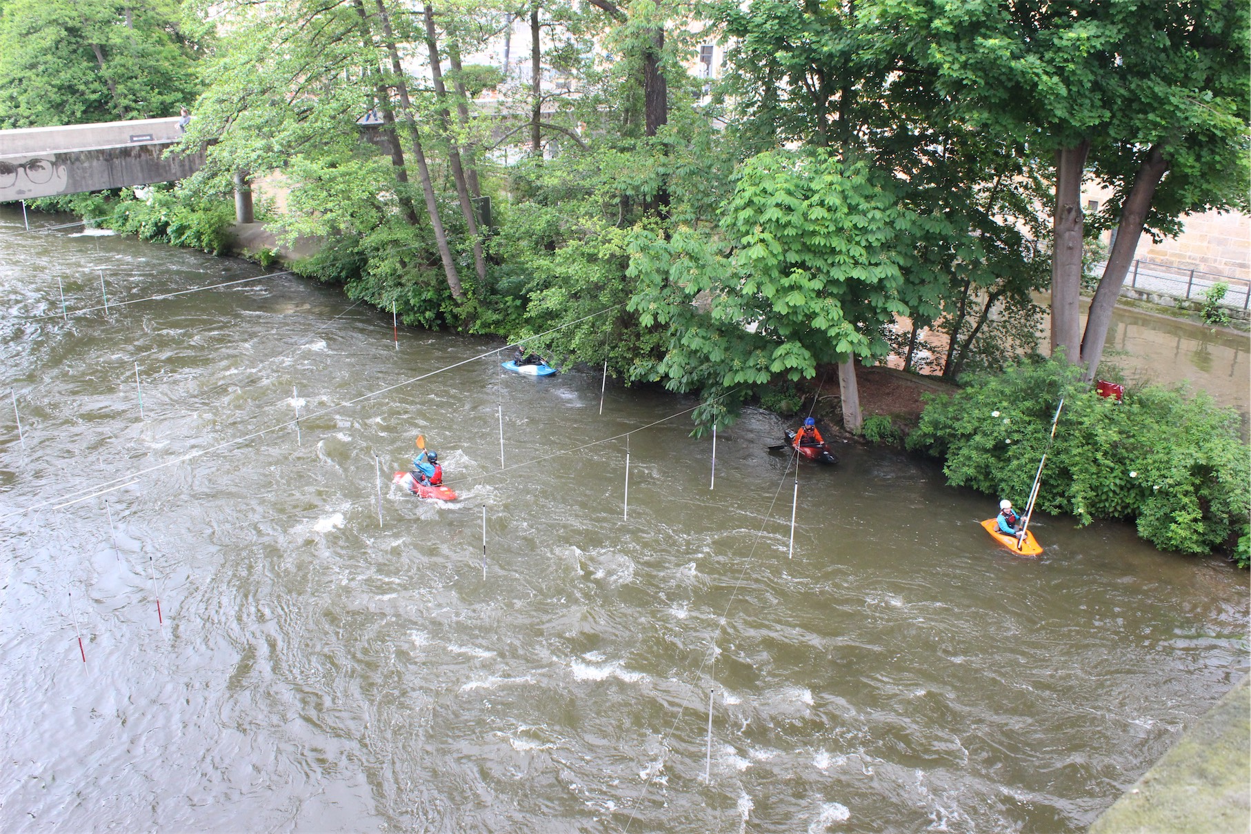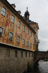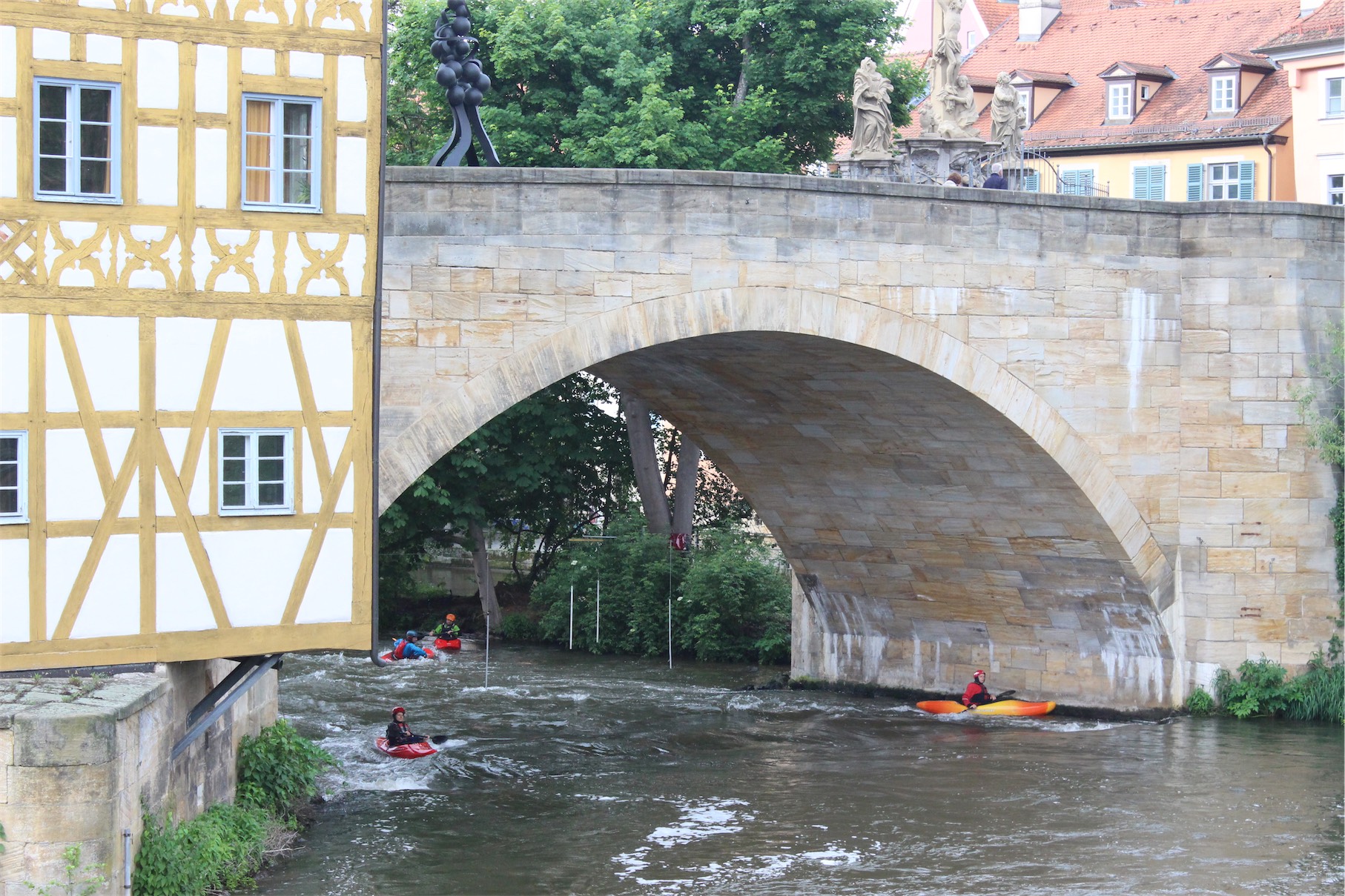 As we walked over the Obere Brücke (Upper Bridge) to the front of the Old Town Hall, we found people kayaking on the rapids of the river.
