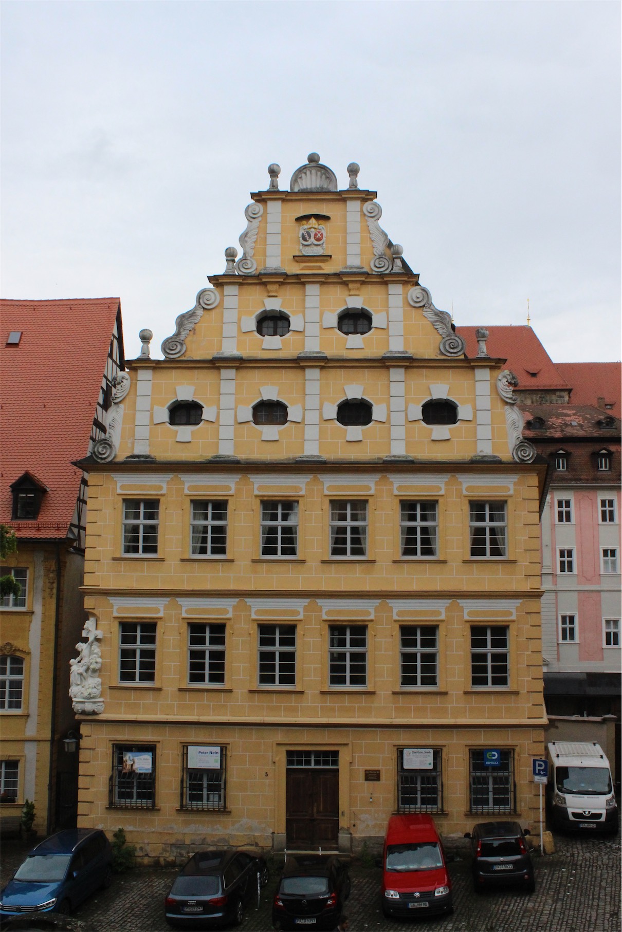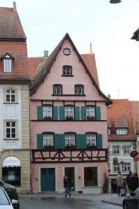 Heller Haus is the Blue building built in 1730 by Joseph Heller, a famous German Art Scholar.