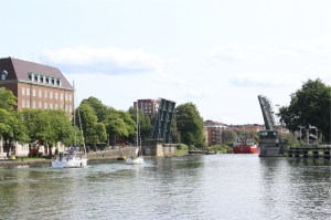 Trollhättan was a convenient place to have a large car factory. The river that runs through the town leads all the way down to the channel between Sweden and Denmark and so they can transport lots of cars at once all around the world. To accommodate the huge ships that could go through, many of the bridges open. We were lucky enough to see a drawbridge that opened to let a number of cargo ships and yachts through.