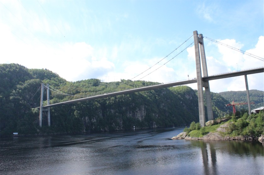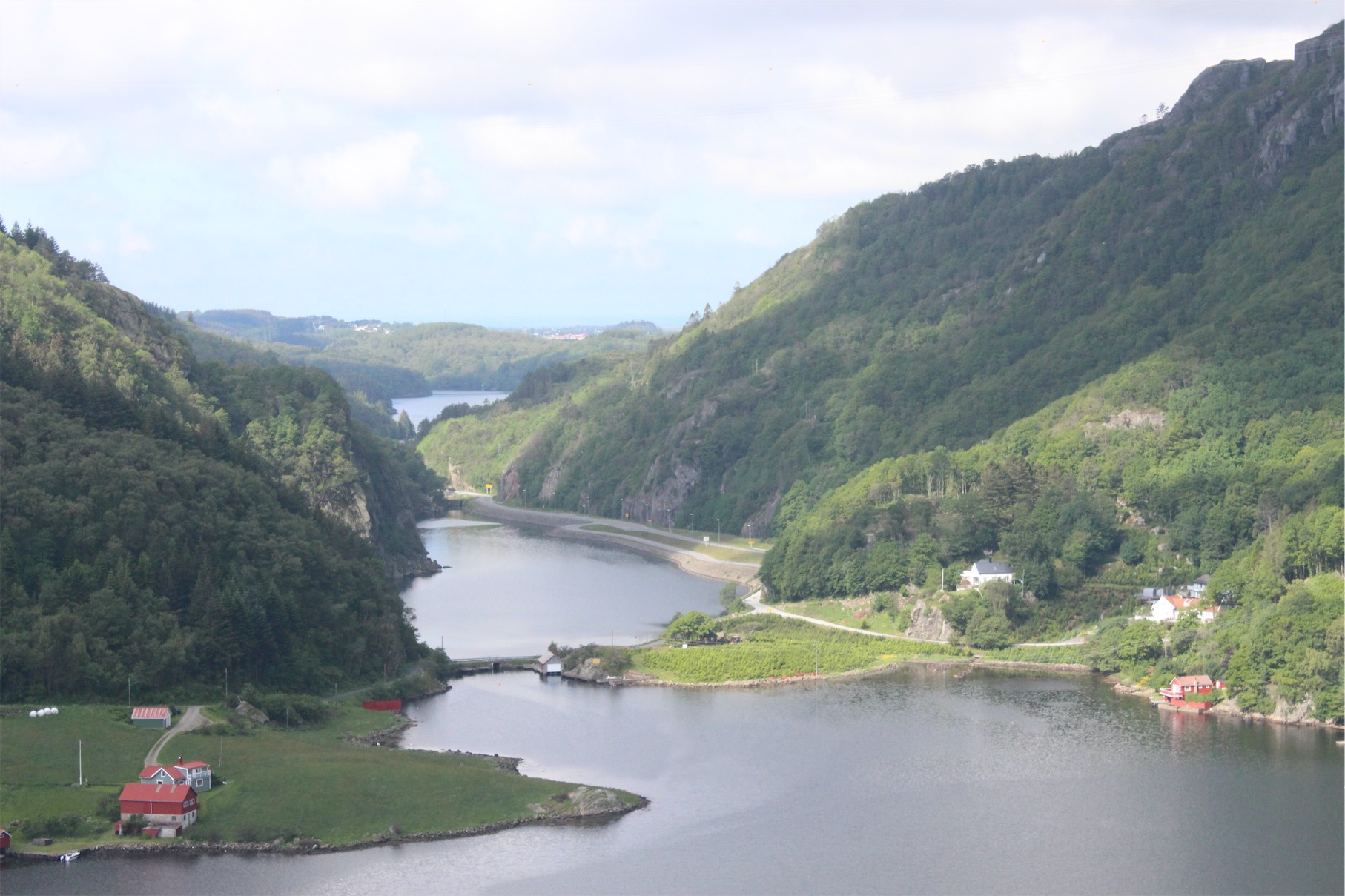 The Fedafjordbru (Fedafjord Bridge) is a very impressive bridge that joins two tunnels in mountains over a fjord. We found a lookout nearby and stopped to take in the view framed by the bridge.