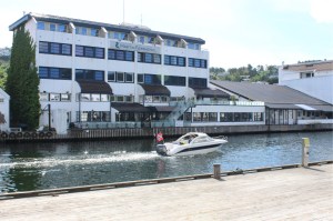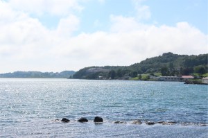After leaving our hotel we stopped on the edge of the beautiful local fjord at Farsund, taking some photos.