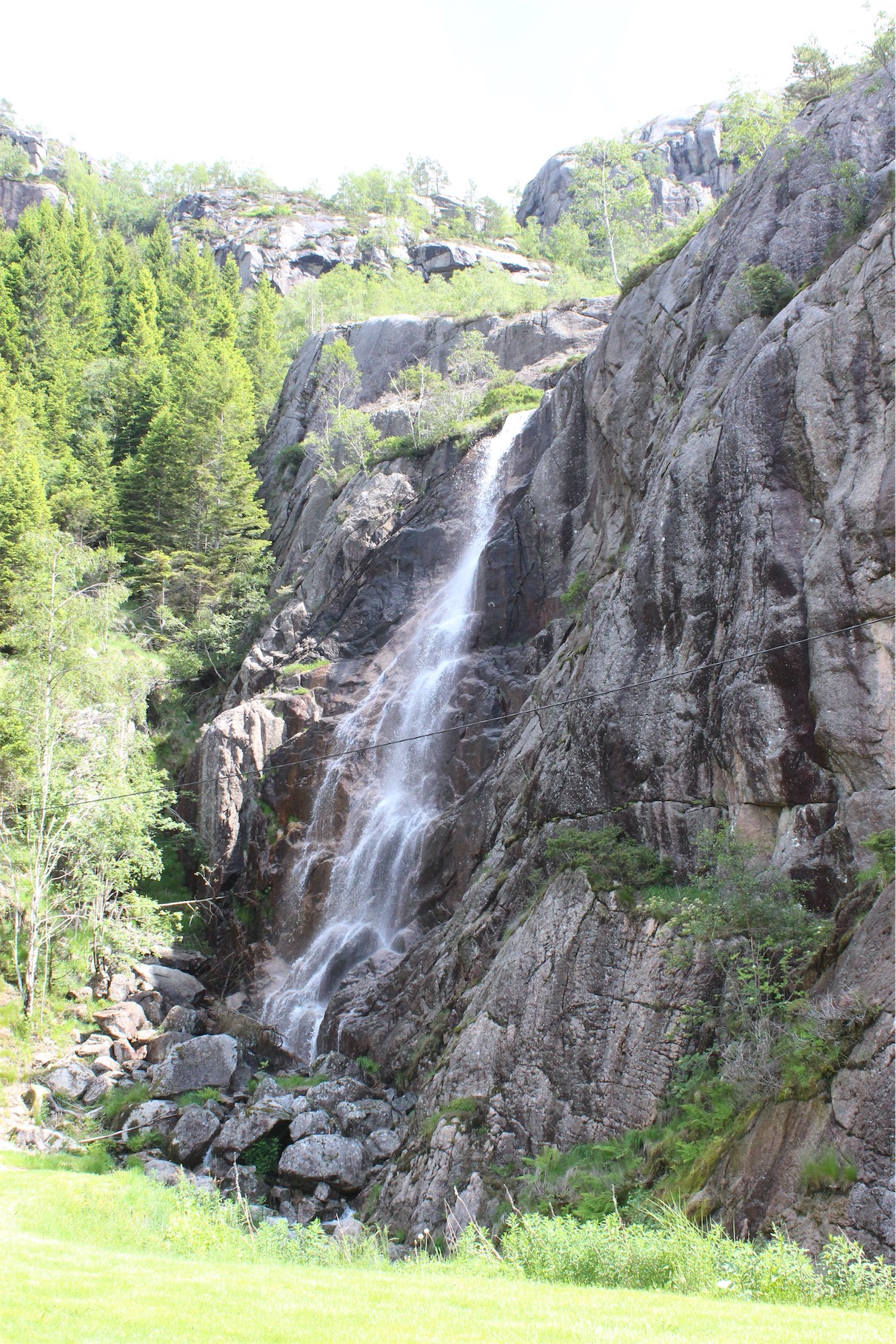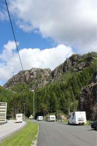 Ten minutes outside of Flekkefjord just before the Lavolltunnelen (Lavoll Tunnel) there is a fantastic rest area that has its own waterfall. We stopped to take a few photos noting that we had seen so many camping cars (motor homes) and caravans on the road today. It wasn’t surprising given that we were getting closer to the summer holidays here in Norway.