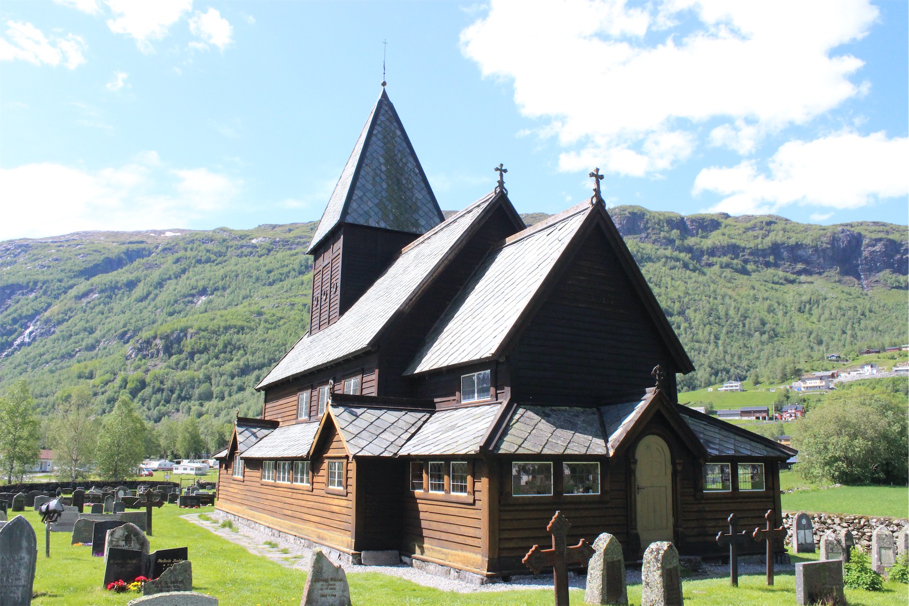 The estimated construction date of this Stave Church is between 1200 and 1250, and it is still a current parish church where services are held twice a month.