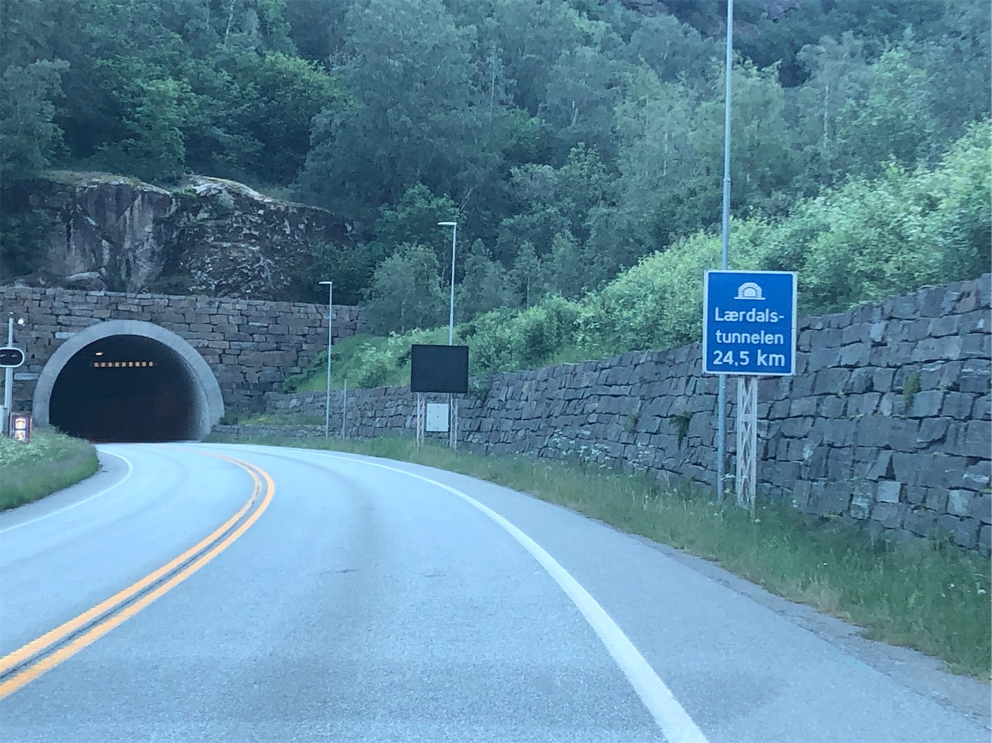 We started our trip by taking the 24.5 kilometre long Laerdal Tunnel (Lærdalstunnelen). It is the longest road tunnel in the world taking 20 minutes to travel. The tunnel took five years and 1.082 billion Norwegian krone or just over $154 millon AUD to construct – surprisingly there is no toll.