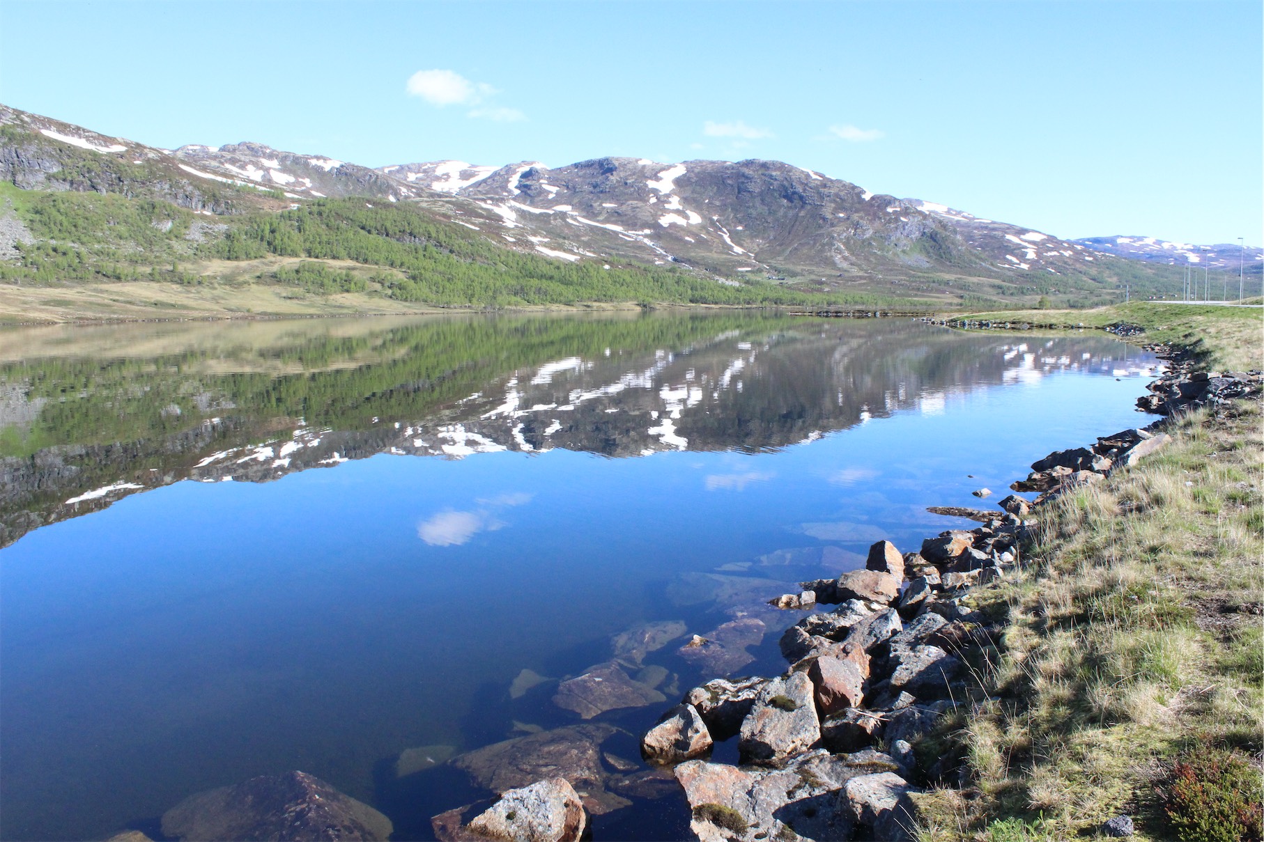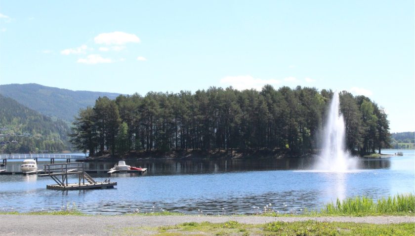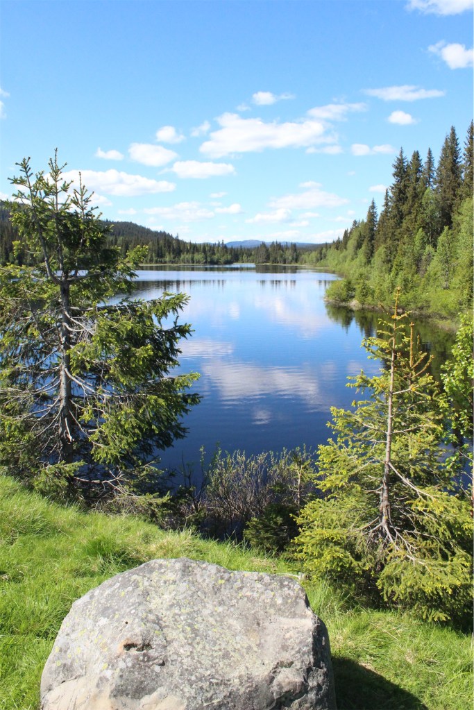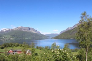 The weather was perfect for a picnic lunch, so we stopped at the town of Fagernes. We found a spot on the banks of the Strondafjorden and watched a car rally of some sort taking place nearby.