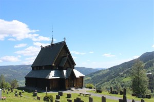 As with most of the churches we had visited today, Reinli Stave Church has a beautiful vista. From up on the hill it looks down to the village and river.