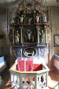 Garmo Stave Church is one of the main attractions of the museum. In 1882, the church was disassembled and eventually sold to Anders Sandvig, the museums founder, who brought it to Lillehammer for reassembly in 1920. Apart from the clay stone baptismal font from the 1100s, all the furnishings in the Garmo Stave Church have come from other churches.