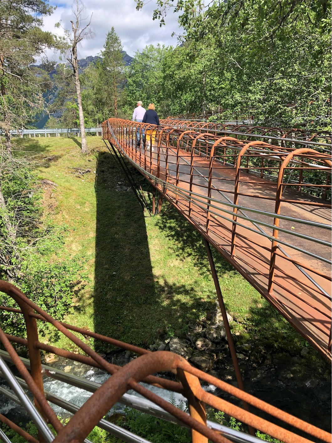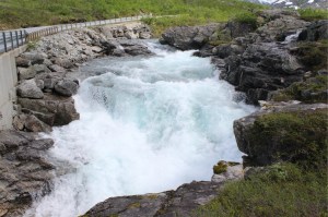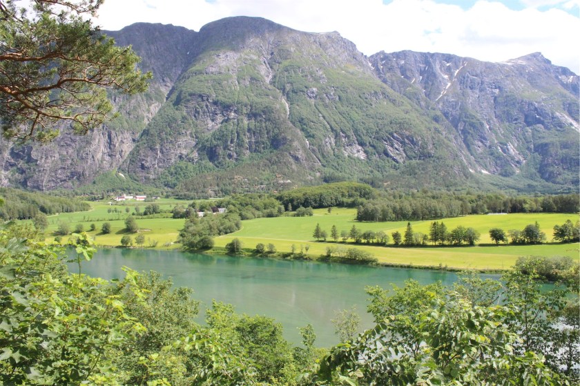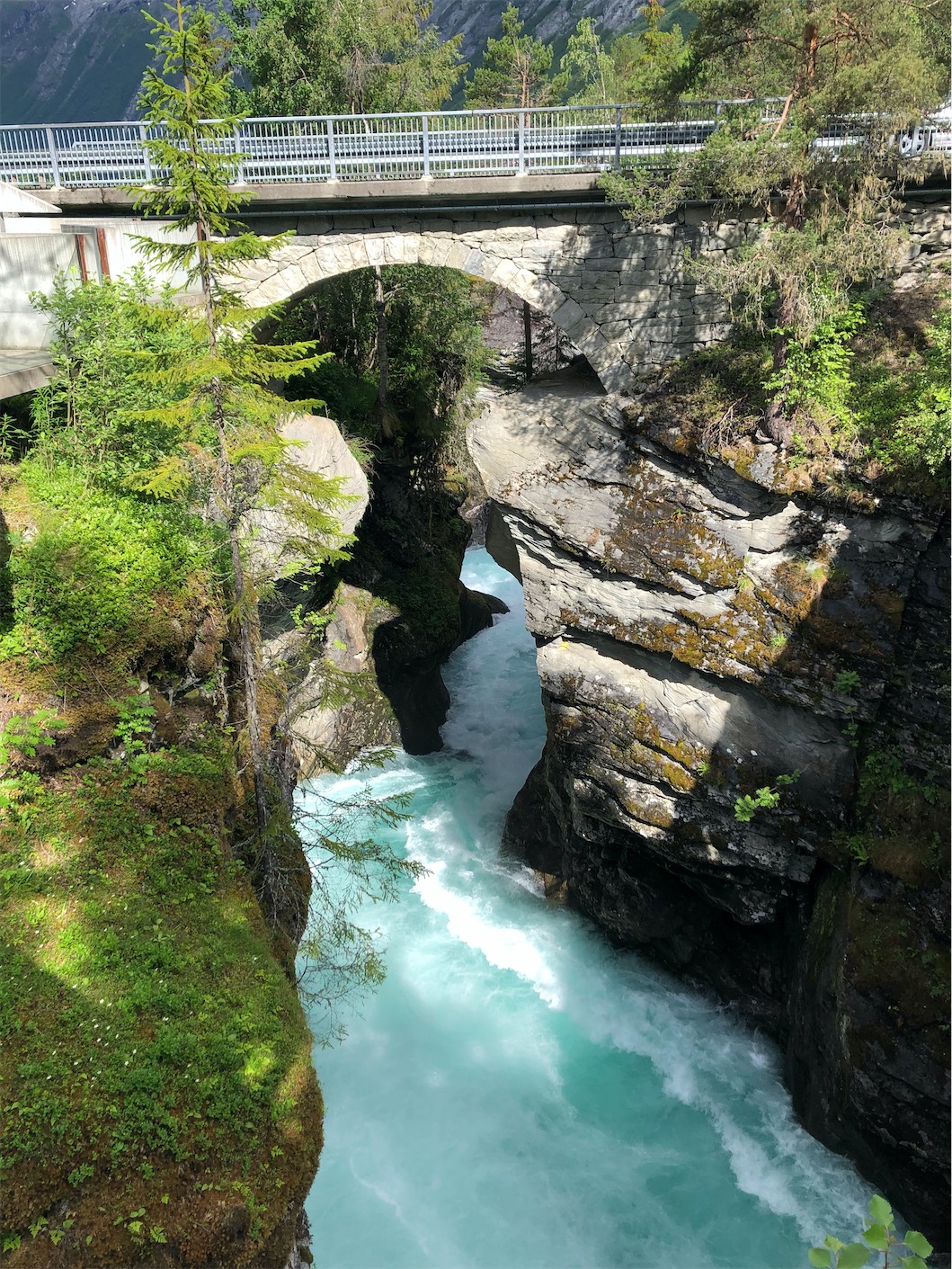 We continued on the 63 road to Eidsdal taking the 10 minute ferry crossing to Linge and soon came to our next destination, Gudbrandsjuvet. It’s a narrow, 25m high ravine through which the Valldøla River runs between cracks in the mountain.