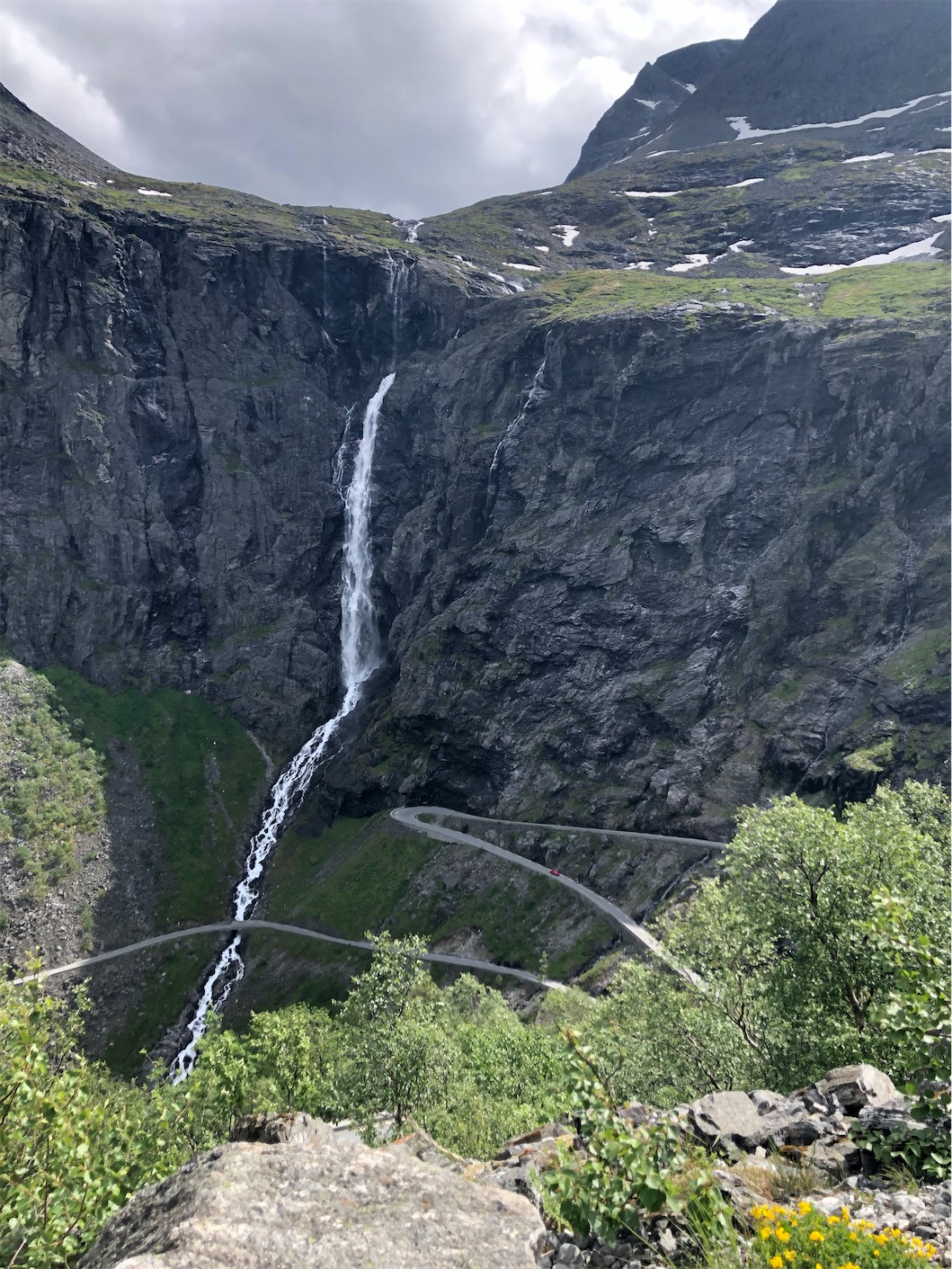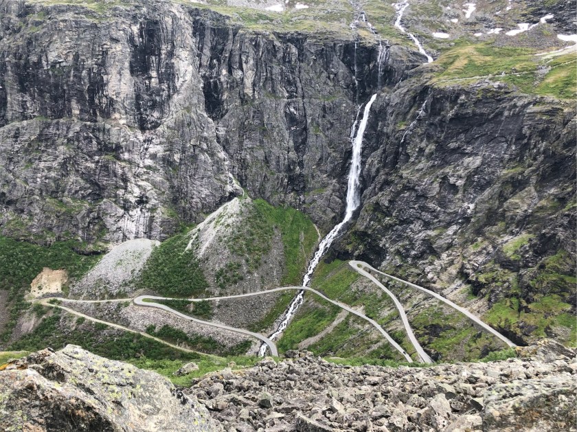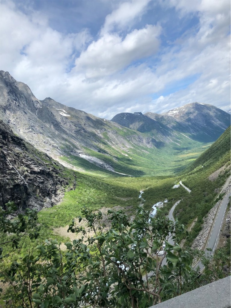 Once reaching the base of the mountain we parked the car and got out to look up at the winding road we’d just travelled. We were so pleased that the rain and wind had paused while we passed through the Trolls’ Path.