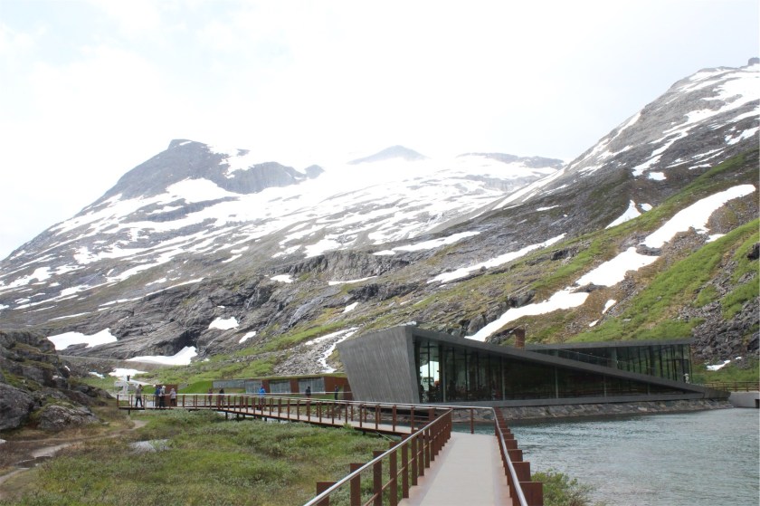 The Trollstigen Tourist Centre is a great spot that has two spectacular viewpoints . The walkways and platforms are designed so that they blend in with the surroundings. Some parts are carved into the rock while other parts are built on stone walls.