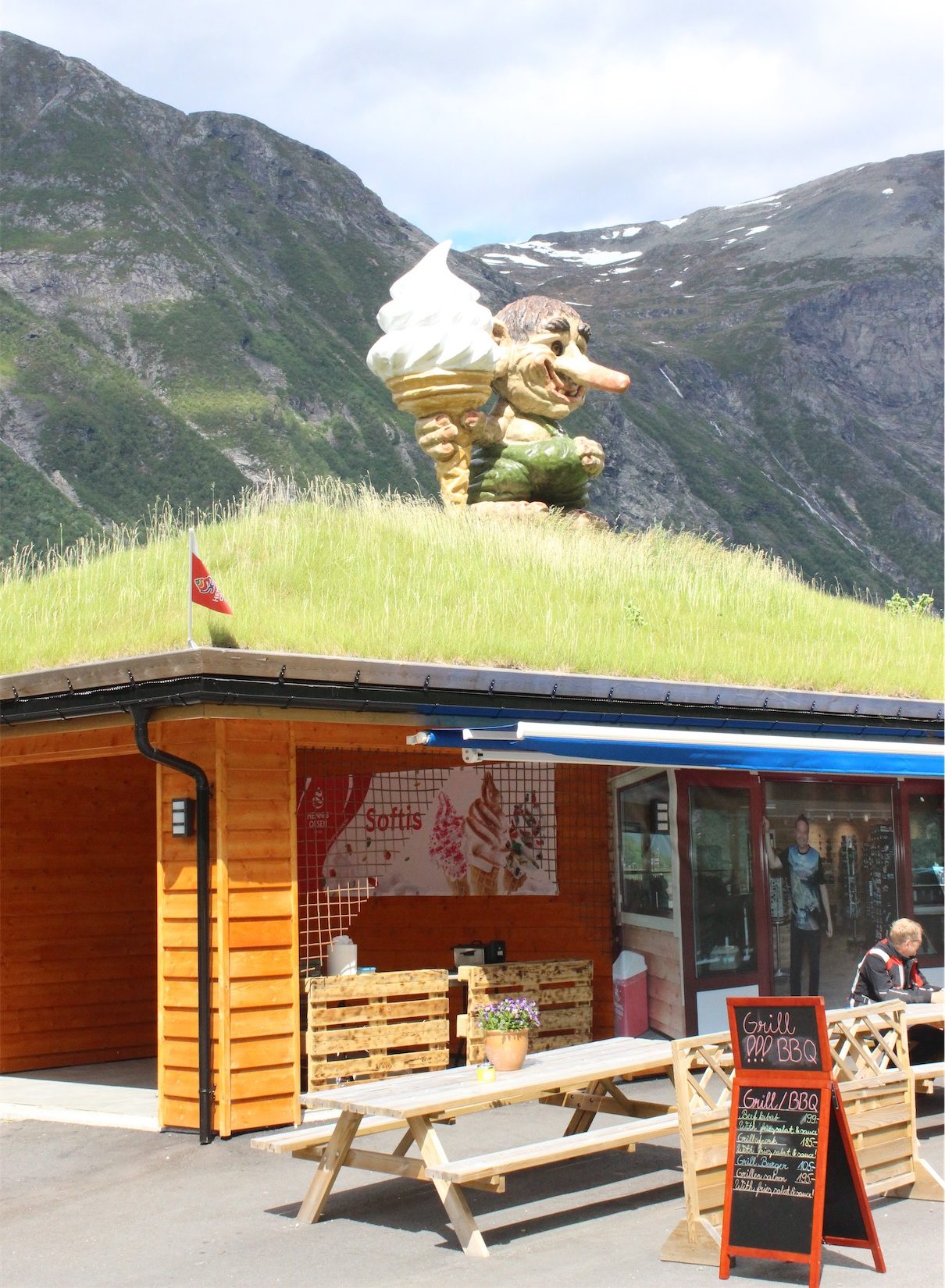 With still over 3 1/2 hours to reach our final destination of Oppdal, we stopped in at a strange cafe – Trollkiosken (Trolls Kiosk) to have a coffee and a bit of a break.
