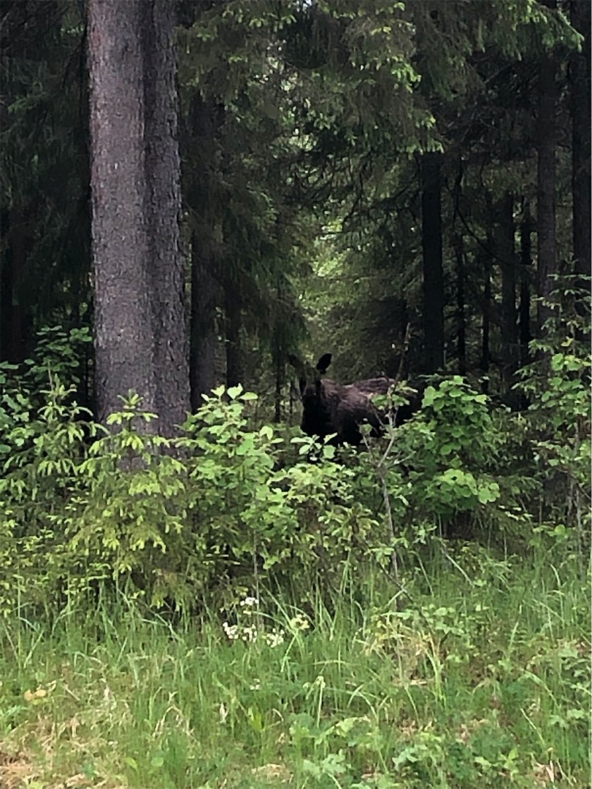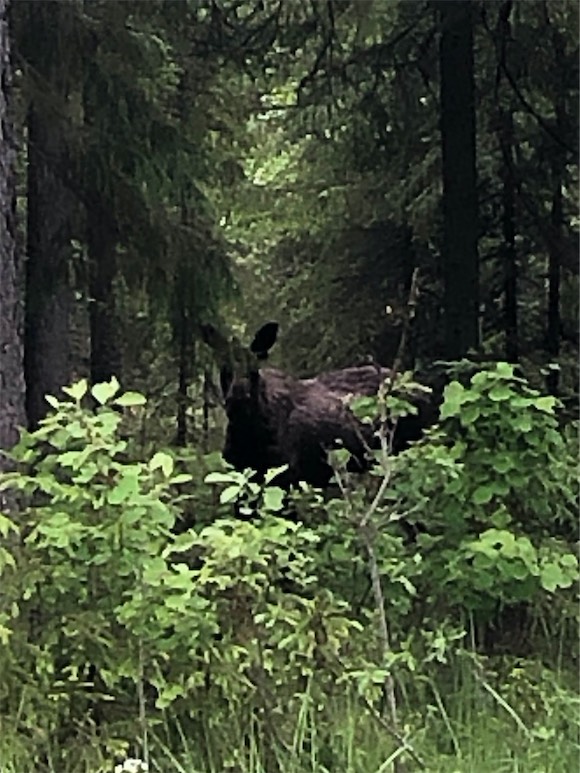 About 70% of Sweden is covered in coniferous forest. As we began to drive through a particularly dense forest area Bec suddenly sat up straighter. “Slow down, I’m sure there’s a moose standing in the middle of the road up there” she yelled.