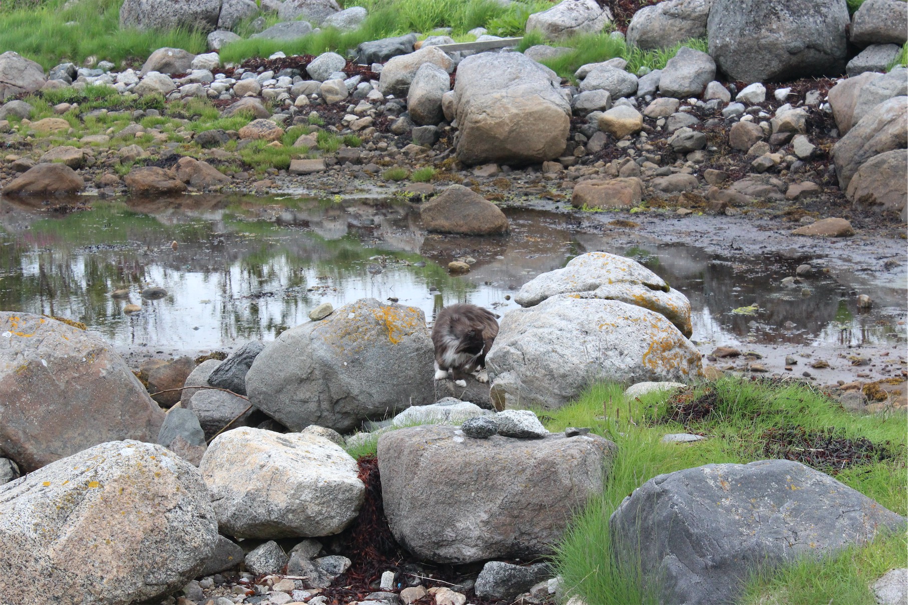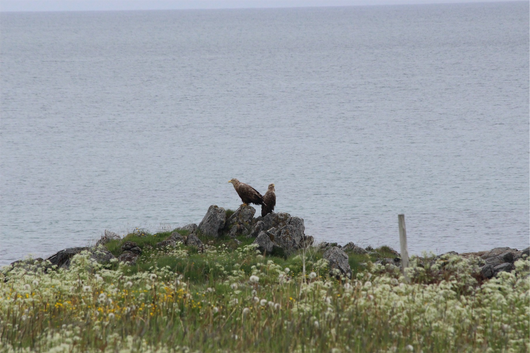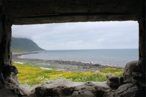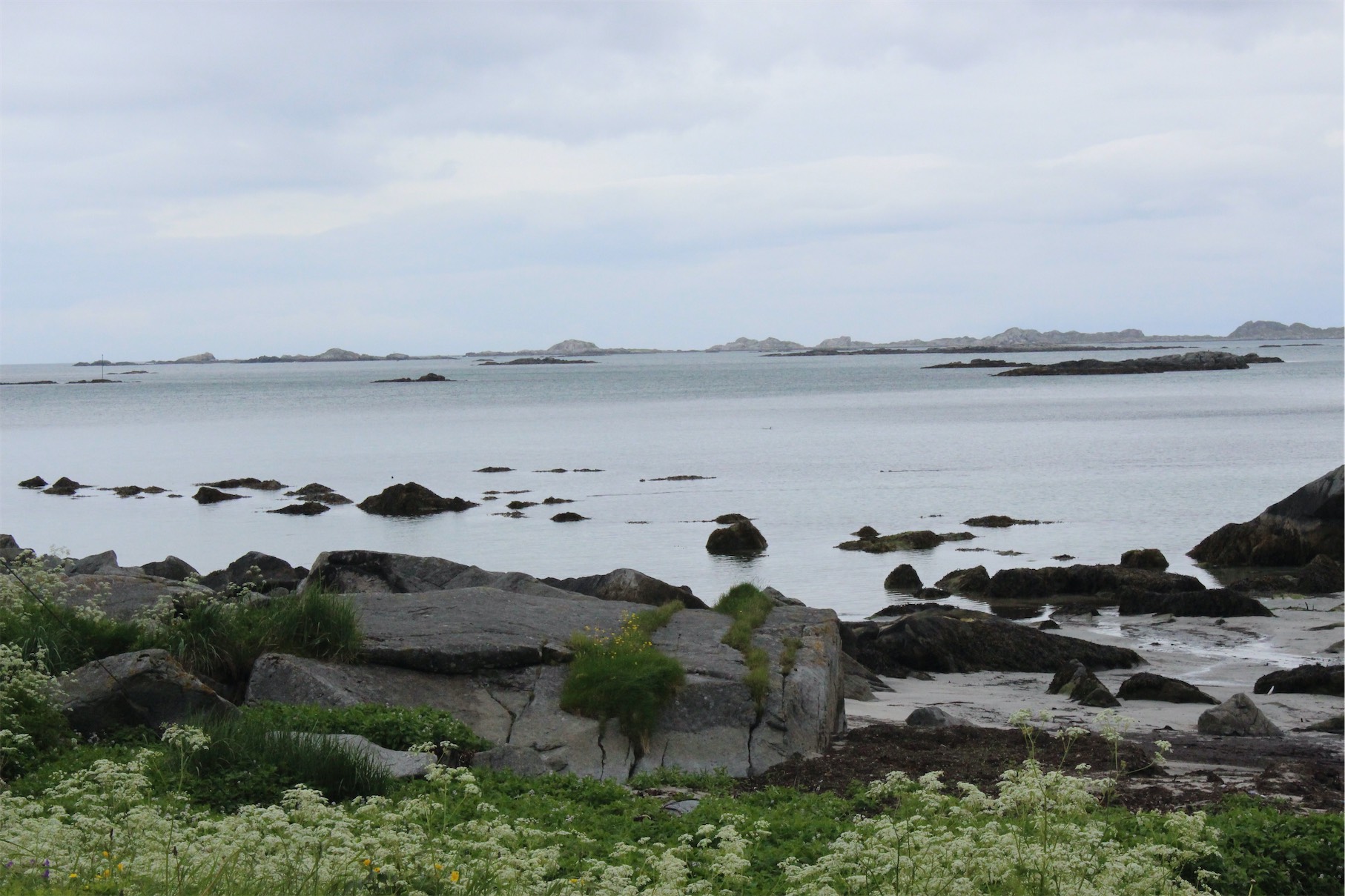 The drive along the ocean’s edge was amazing, though the weather was still disappointing the landscape was not. Fishing huts and drying racks were popular with seagulls despite there being no fish hung up yet. Wildflowers were everywhere and it was truly beautiful.
