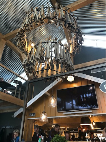 We stopped in at Anita’s Sjømat (Anita’s Seafood) in Sakrisøya for lunch. The decor was interesting as was the presentation of our fish burgers!