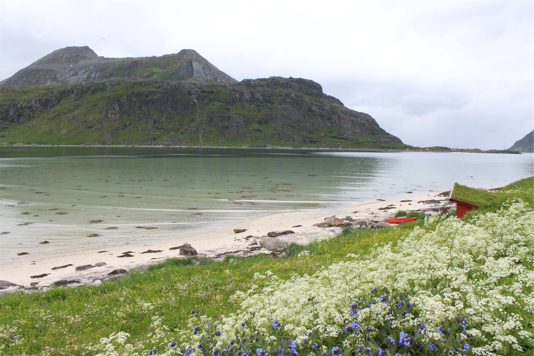 We drove through Haugveien on the way to Nusfjord, it was pristine coastline bordered by lovely wildflowers.