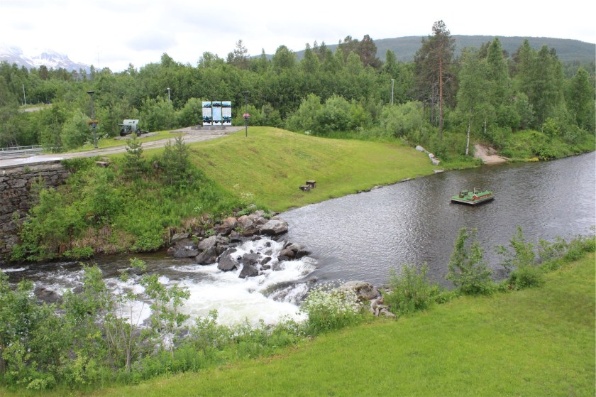 Once we left, we kept an eye out for interesting things such as this strange sculpture at the rest stop under the bridge crossing the Målselva River. We know nothing about it, but it was interesting enough to encourage us to get out of the car and have a look around.