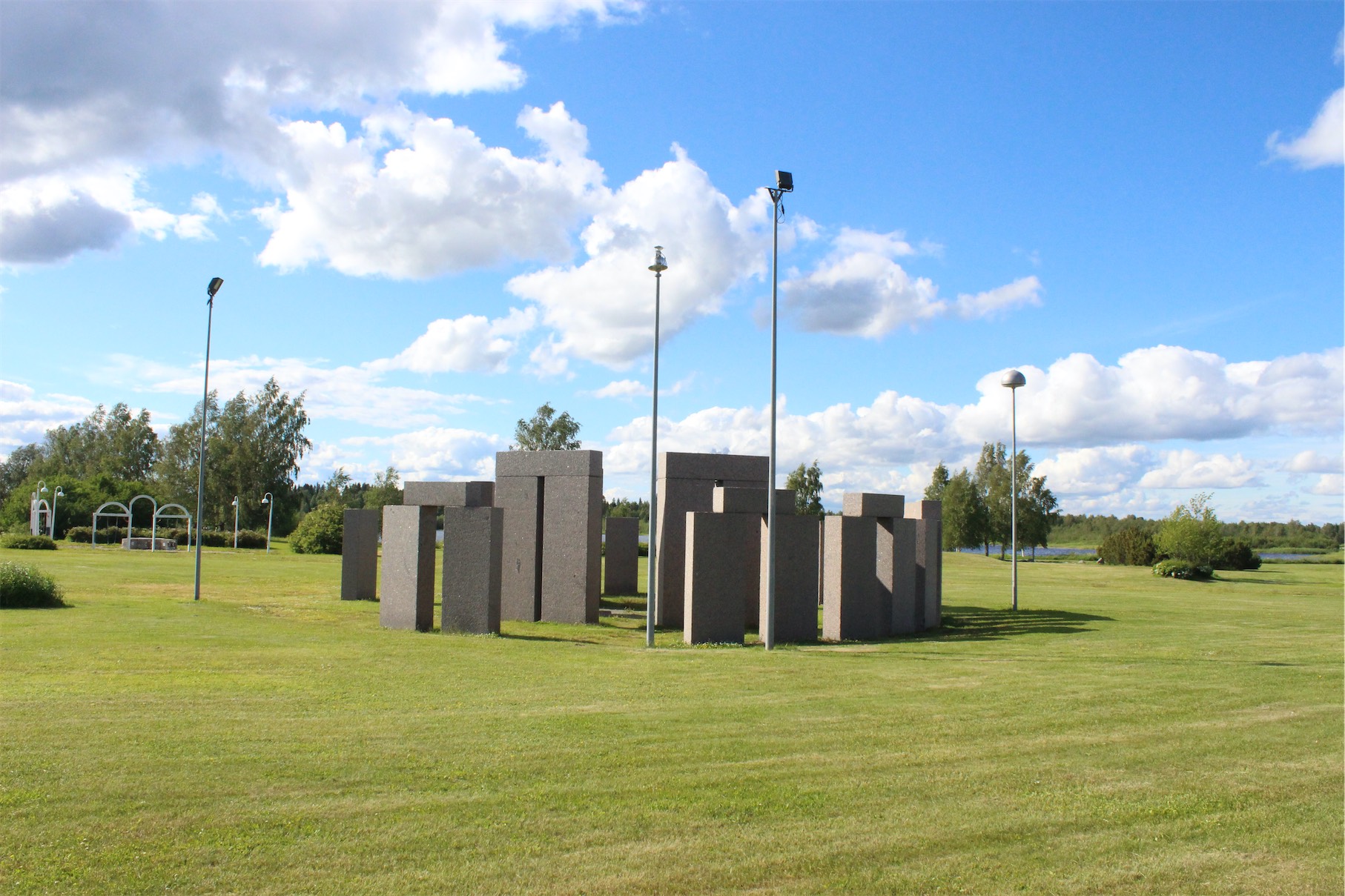 Hahtisaari Park is home to the sculpture named StoneAge, inspired by Stonehenge and made out of red granite.