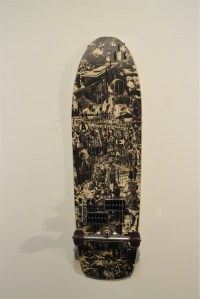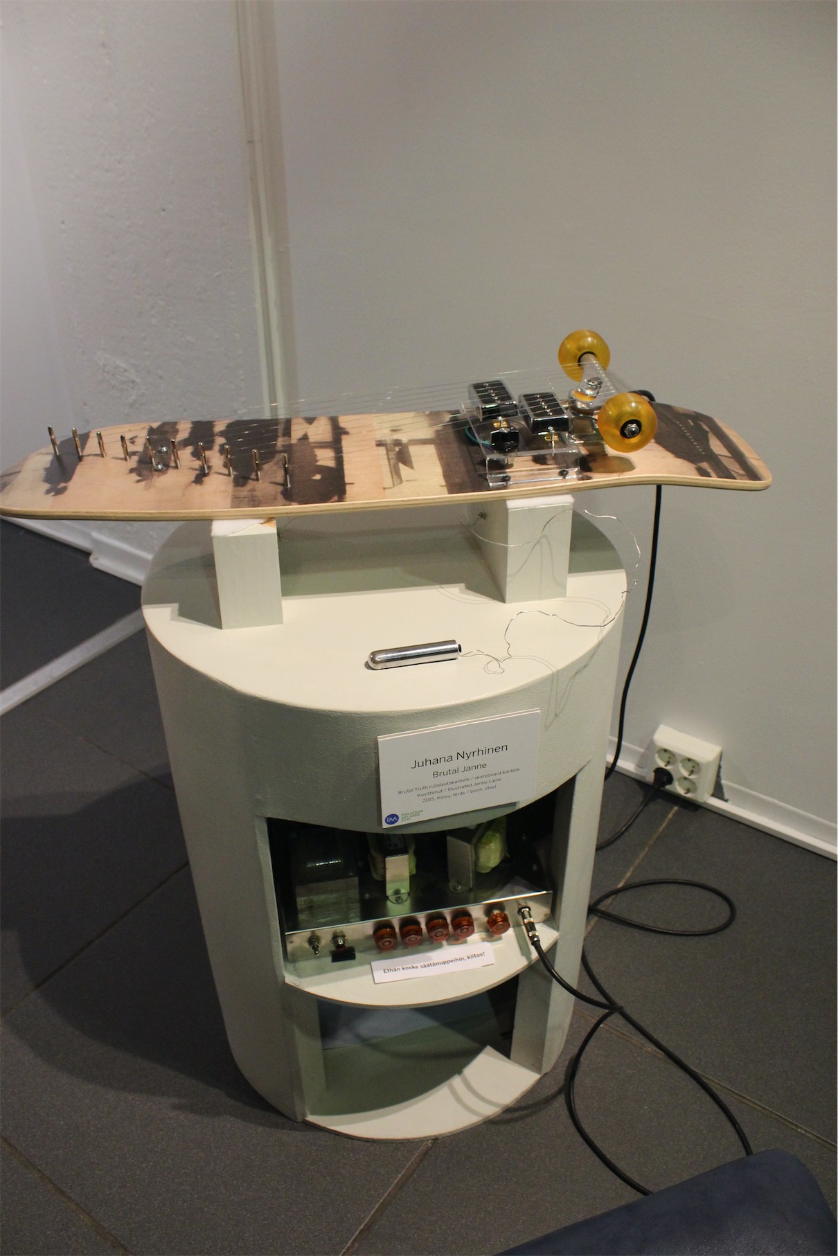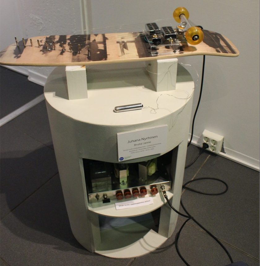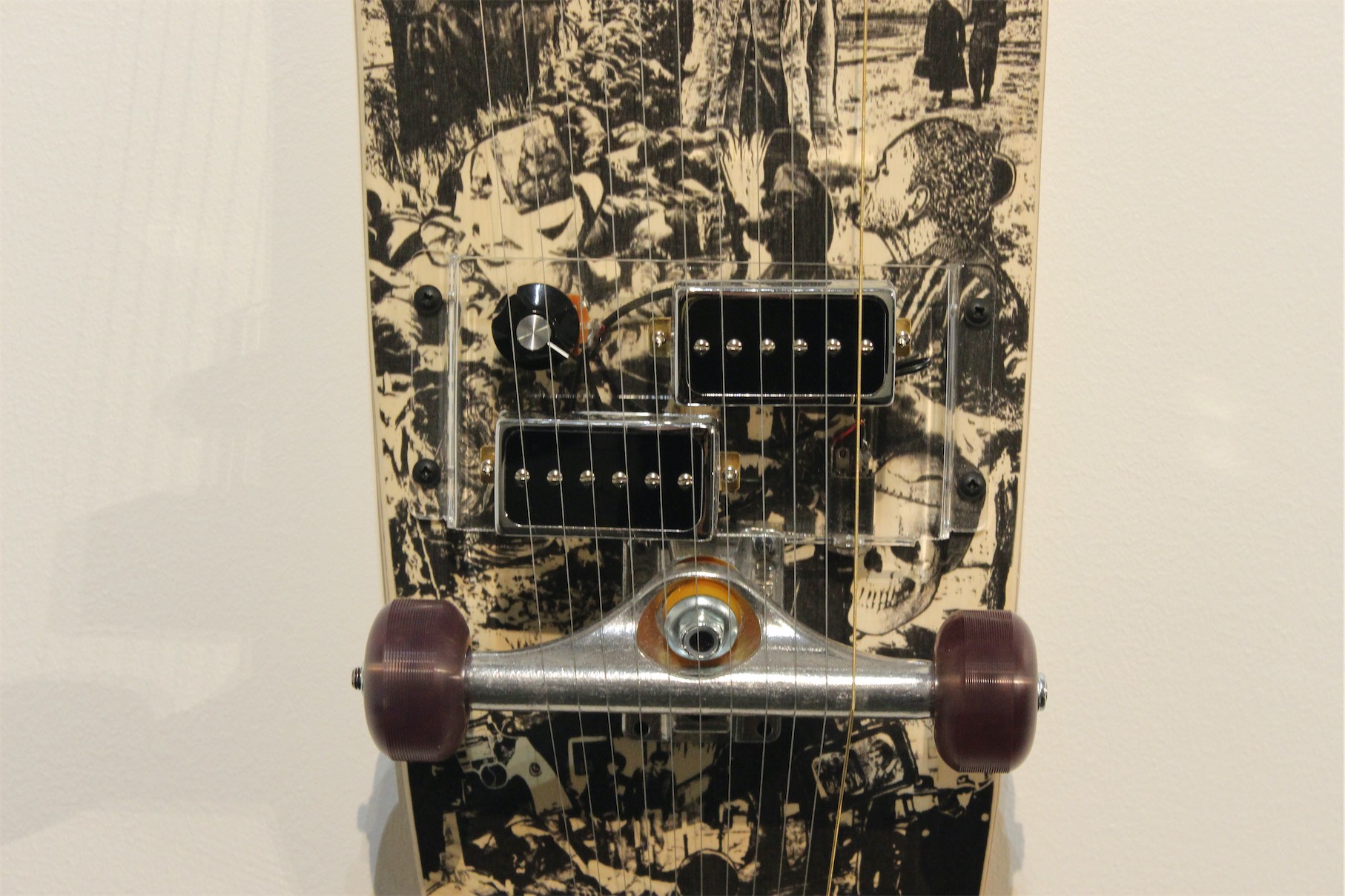 On the way out to dinner we came across an interesting exhibition. A Finish artist Juhana Nyrhinen had created a collection of fully functional guitars and kantele zithers (a traditional Finish string instrument) out of skateboards.