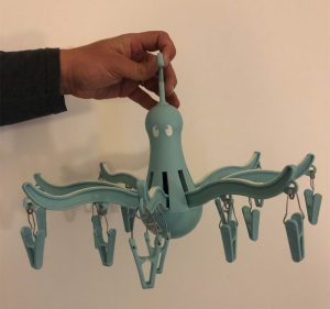 The ‘Octopus’ is the keeper of our socks. An easy way to get socks dry it can be hung easily, even on the back of a chair and in the back of the car if needed.